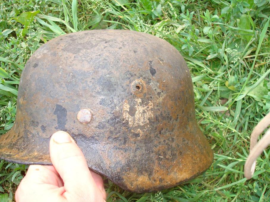 Ходил как то немного севернее,вдоль дороги на Плеханово,назвонил в каком то земляном валу нашу каску,а под ней противогаз и подсумки.Рядом была бльшая воронь с водой.Щупа с собой не было,и сомнения до сих пор гложут.А таких ям там до ж..ы:smile_8: