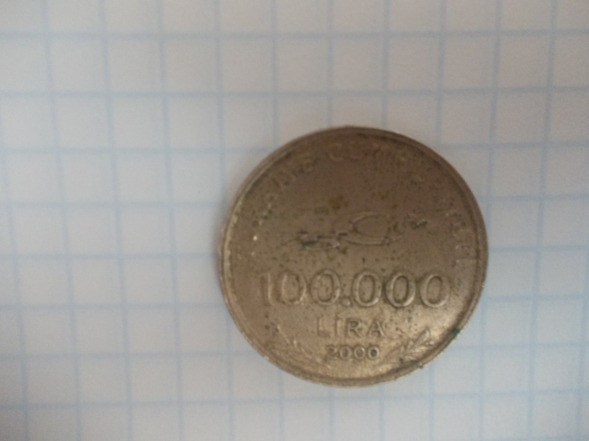 Доброго дня, попалась мені така монета 100.000 лір 2000рік -хто підкаже її вартість, фото получилось погане а так монета в лоброму стані