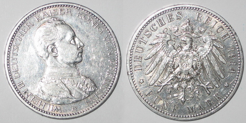 Великолепная монета 1914 года. Вы только посмотрите, немецкое серебро, а сохран радует глаз. Не копаная. Всего лишь за 45 евро она украсит коллекцию истинного ценителя. На фотке слева чуть засвечена.