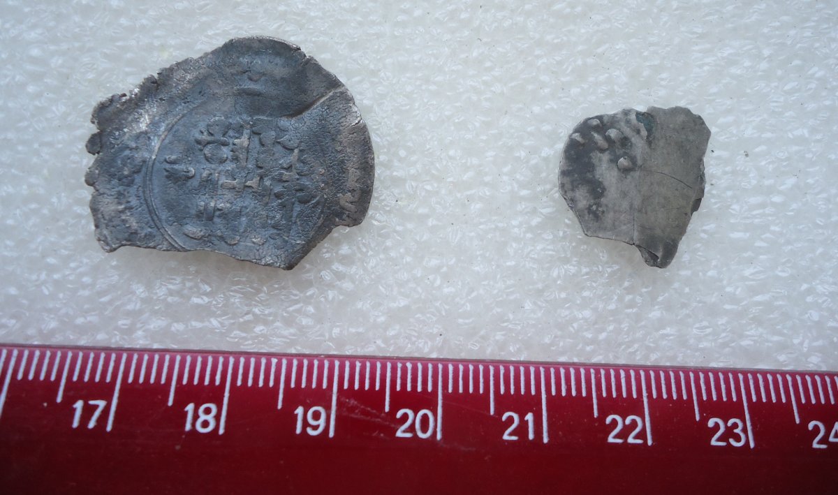 Обломок по-меньше в свои лучшие времена мог быть денарием Владимира Ольгердовича.