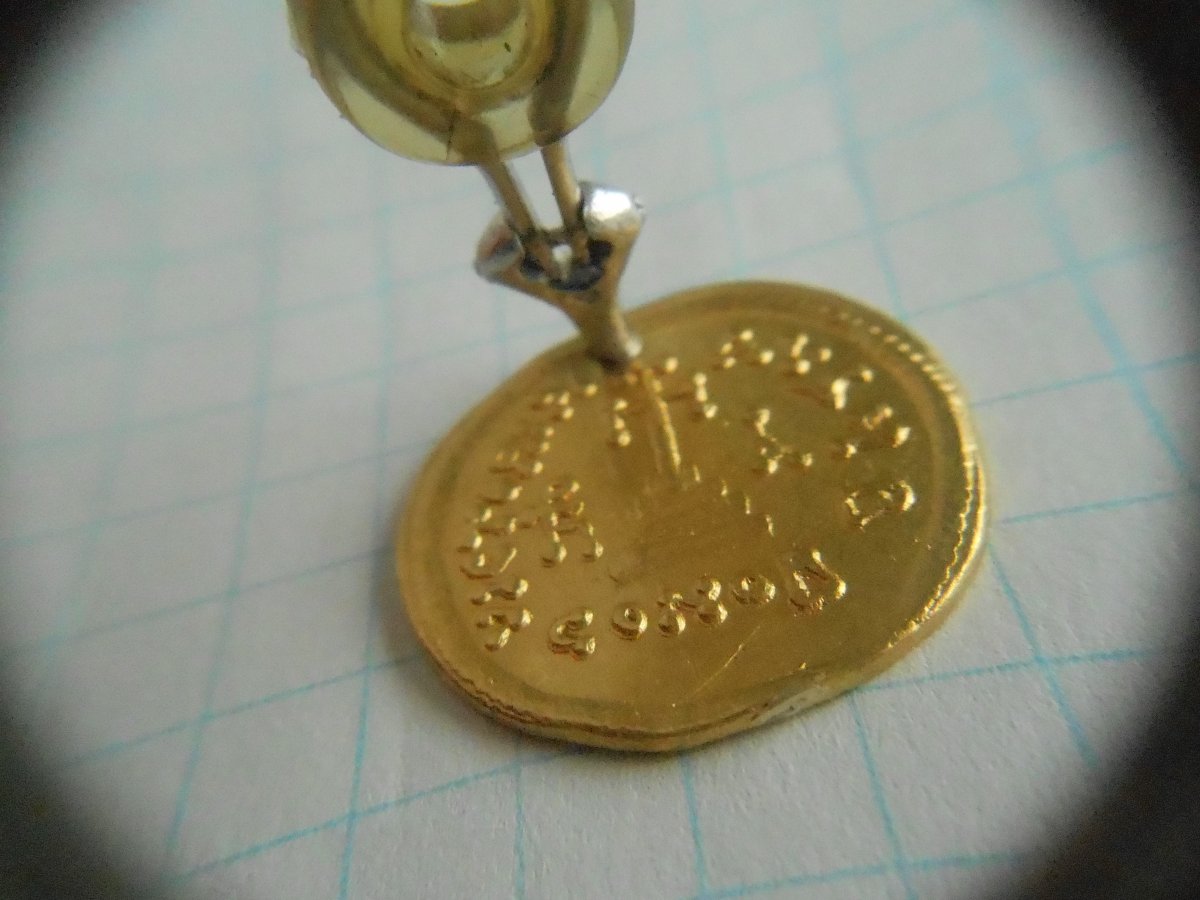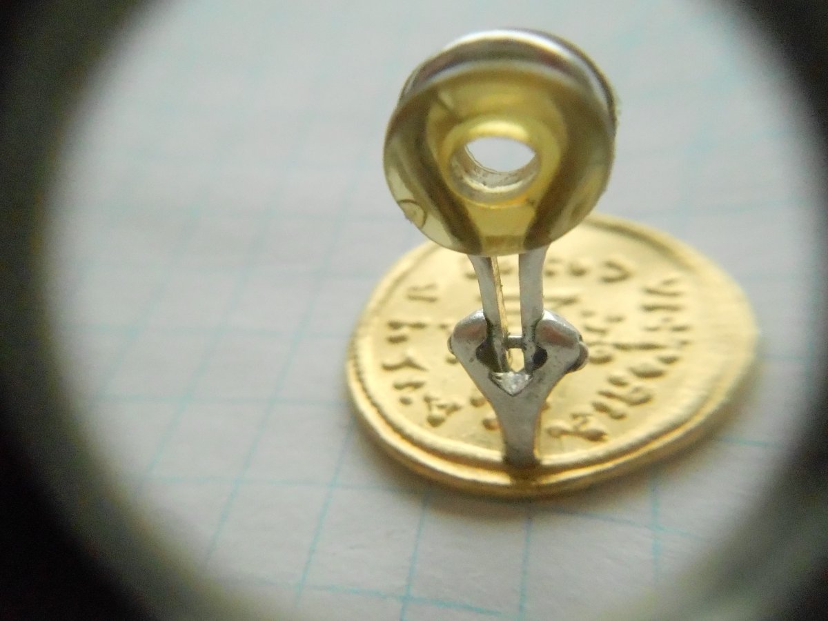 Спасибо за ответы! У меня были предположения, что монетка из благородного металла поэтому проводил тест драйв с йодом и уксусом - изменений на поверхности не наблюдается. Материал крепежа по цвету очень похож на серебро да и клеймо какое-то стоит. Может посоветуете как определить материал монетки или же её подлинность
