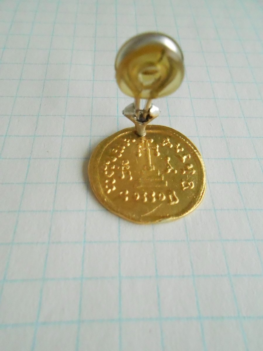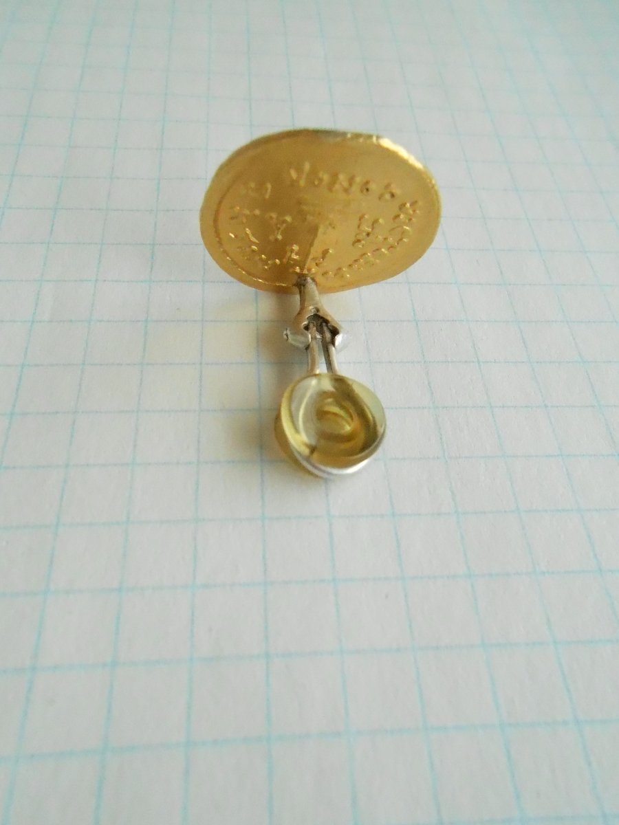 Здравствуйте уважаемые! Попалось в руки такое изделие. Изготовлено в виде клипсы, состоит из двух составных деталей: монеты и крепежа. Крепёж припаян к монете. Масса изделия 5,25 гр., диаметр 20 мм. На крепеже присутствует одно клеймо. Какие будут соображения??? Всем спасибо!:beer: