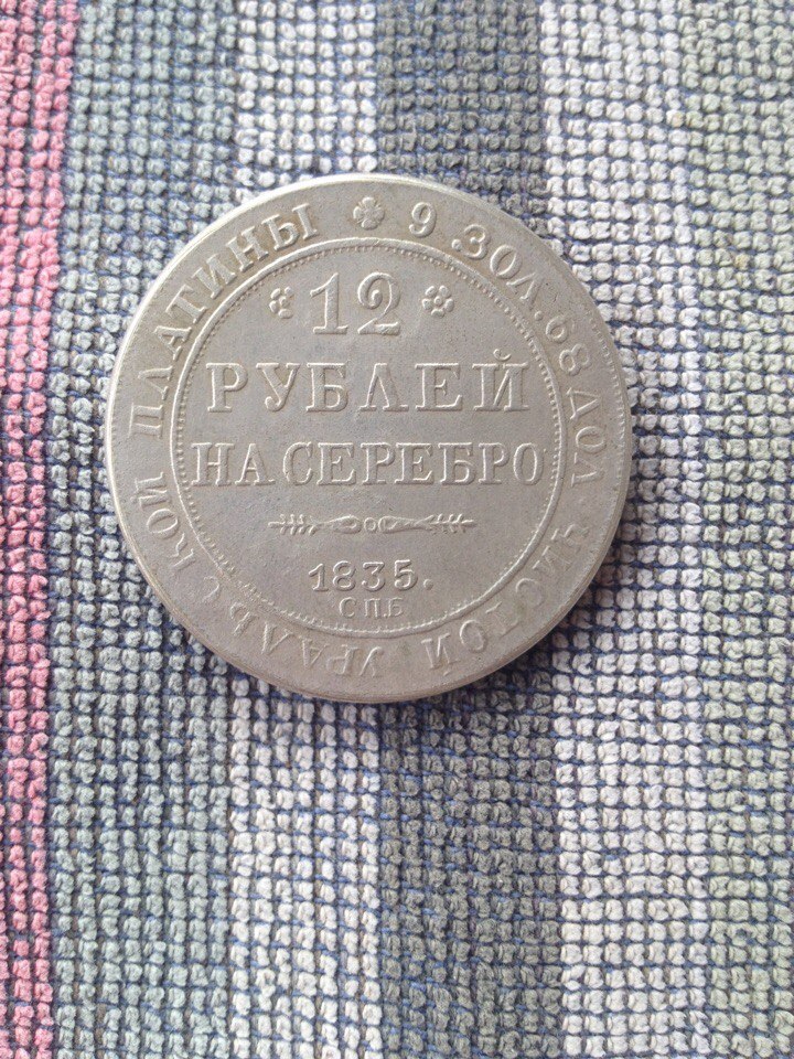 https://www.google.com.ua/url?sa=t&rct=j&q=&esrc=s&source=web&cd=2&cad=rja&uact=8&ved=0ahUKEwiK6Ia-kr3TAhVF3iwKHZzpCLMQFgglMAE&url=https://www.raritetus.ru/stoimost-monet/carskie-monety/nikolaj-i/platina/12-rublej-1835-spb-6348/&usg=AFQjCNGTGs9qDCLgmngP7NbE0zUdcovLiA Это проходы. Монета же видится копией и цена зависит только от того из какого метала ее изготовили