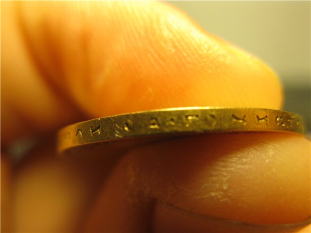 на гурте две буквы есть ,типа: АГ или АР клеймо мастера,вот и от них то и цена скачет!!! ГУРТ-ребро монеты,чистаго золота 1 золотникъ 78,24 доли;