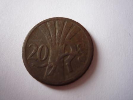 Та часть монеты, что видна на последнем фото это 20 геллеров со снопом?