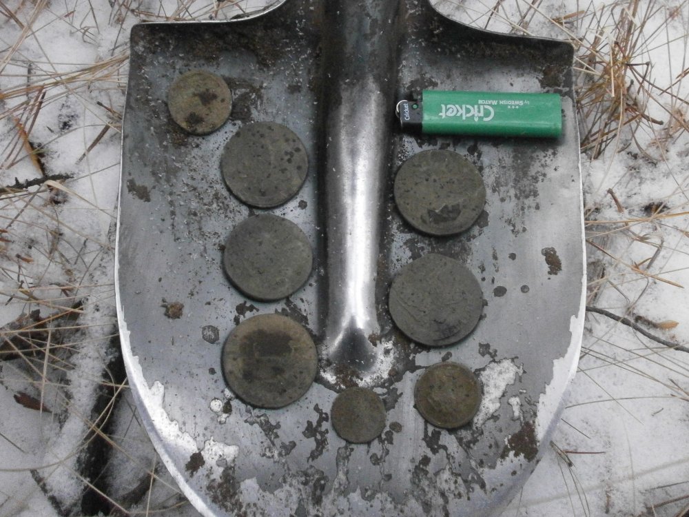 Вот только пришел. На том-же месте добил (полтораки) в той-же ямке, ямка мягко сказано я когда закончил и глянул на котлован,получившийся после моих разкопок, пришел к выводу что один я его не закопаю. По сему завтра беру с собой товарища и опять туда. Ну а монетки помою и потом выложу, если кому интересно