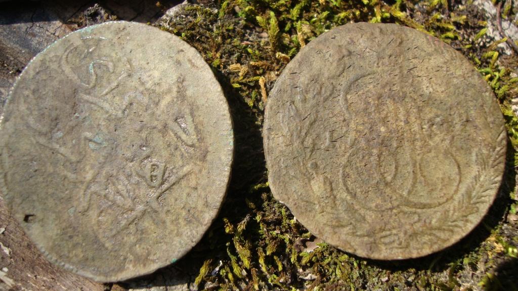 С Катькиным пятаком уже понятно,а вот вторая,как объяснили,вроде пять копеек Шахин-Гирея,Кырмыз,и цена на порядок выше.