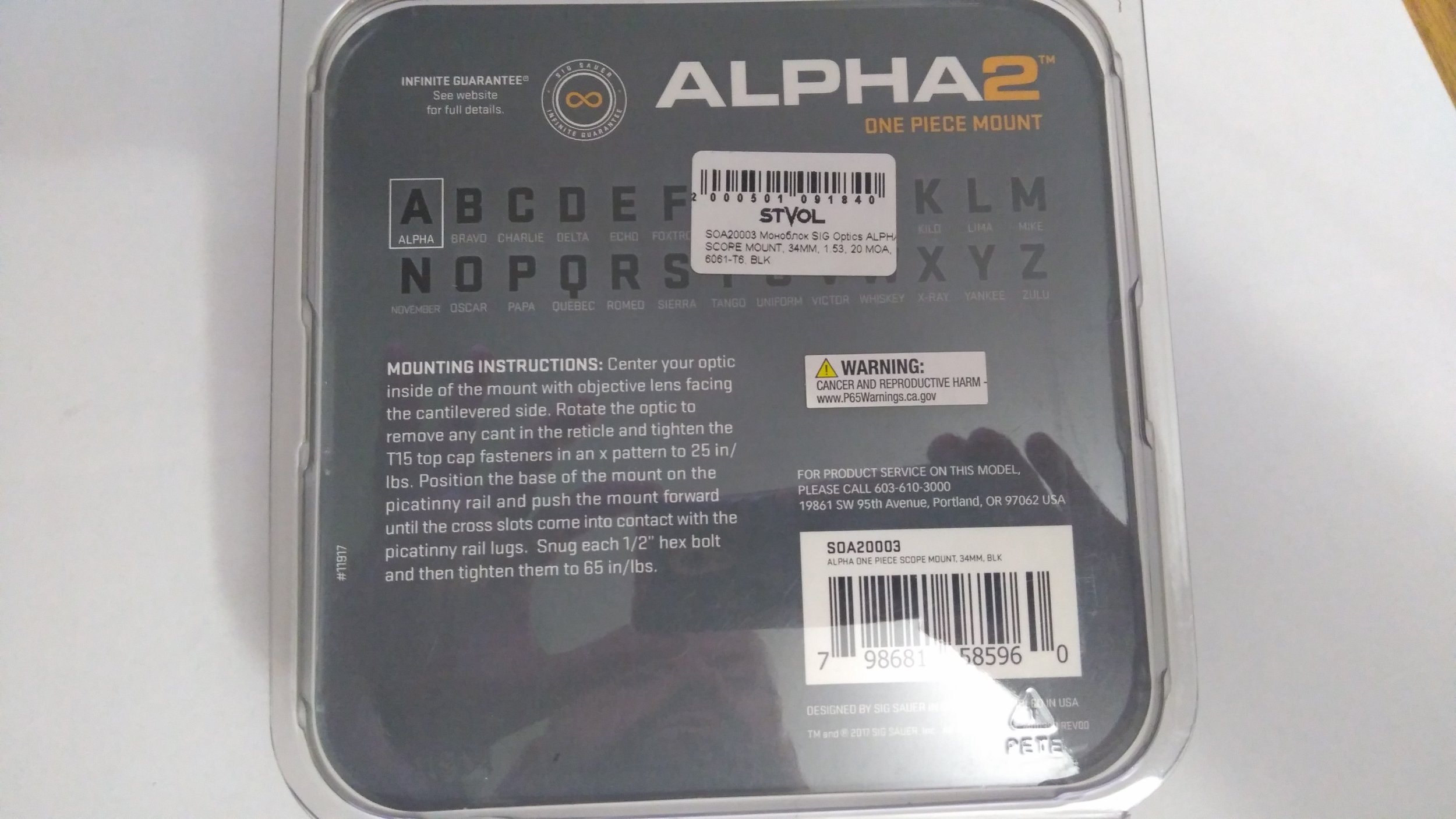 Моноблок Sig Optics ALPHA2 SCOPE MOUNT 34MM