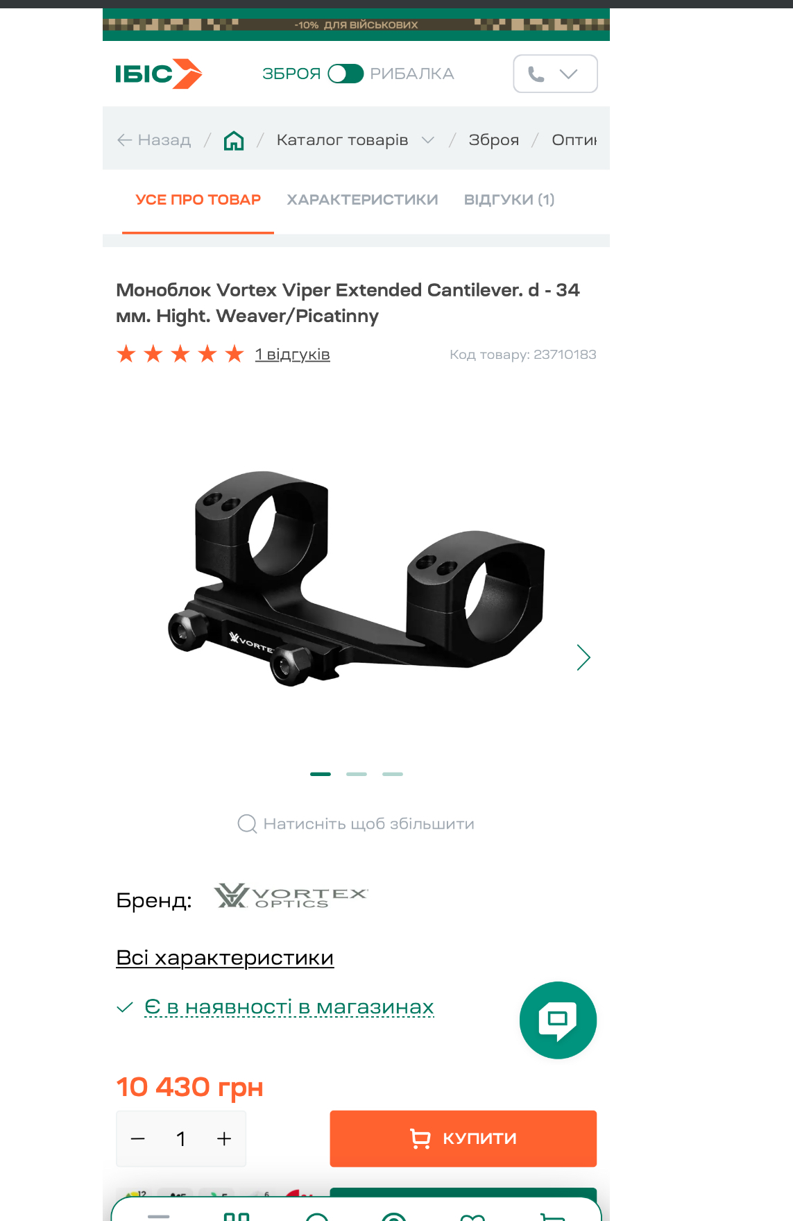Моноблок Vortex . d - 34 мм. Hight. Weaver/Picatinny Новий ціна 5700 0961674сім4сім