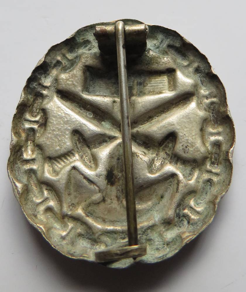 "Знаки За ранение в Первой мировой войне всех степеней изготовлялись из железной или цветной жести методом полой штамповки. В черный цвет знаки окрашивались стойкой к растворителям краской или зачернялись химически, серебро и золото имитировалось химическим или гальваническим методами." (С)