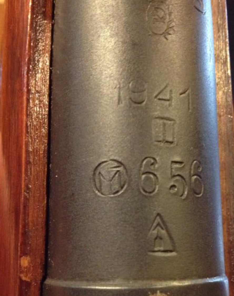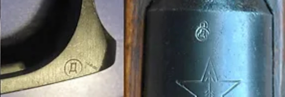 Позначення ремонтної майстерні з відповідним номером. Ці позначення ставилися на хвостовій частині затворної рами та стволі. Рік ремонту не проставлявся.