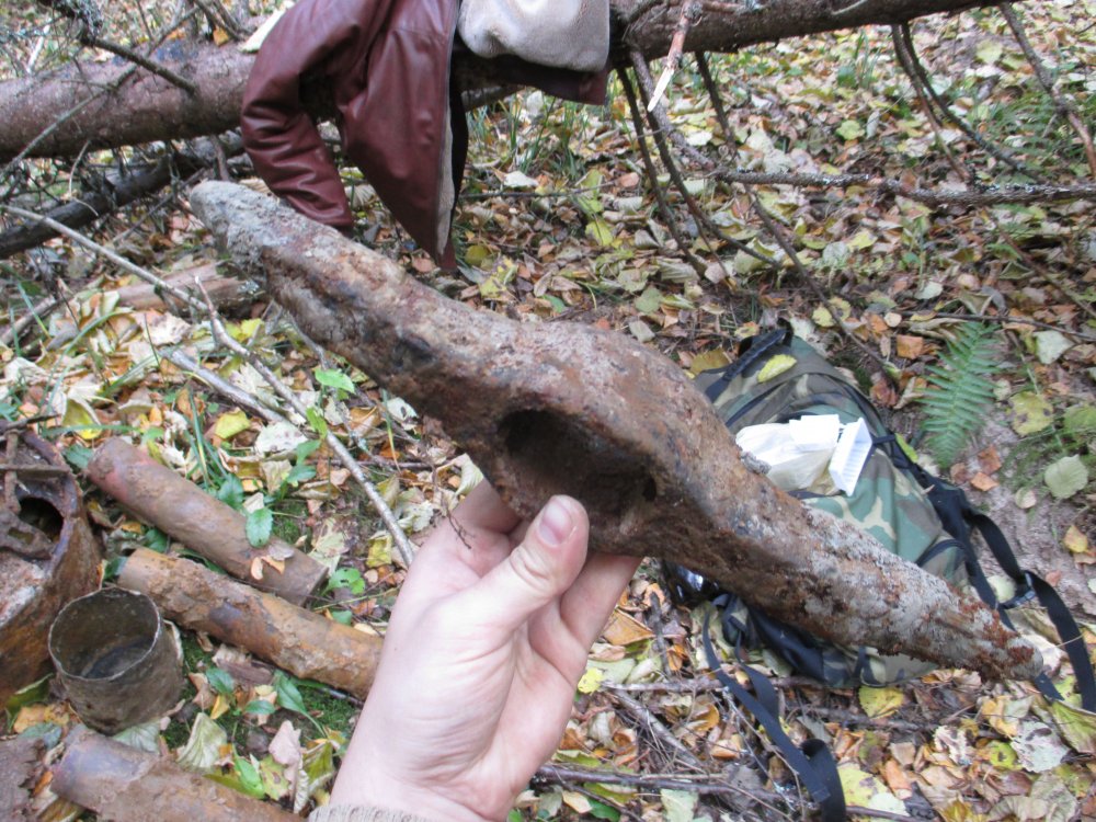 Вот тоже с саперного сброса 76мм под Звенигородом. Гильзу взяли, остальное отправилось обратно в яму.