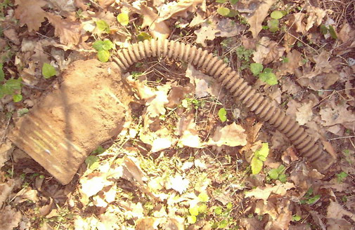 Re: Ближнее Подмосковье... И ещё!!!!!!!!!!В кратце опишу:нашли 2 каски РККА-третья не считается т.к. одни куски.Фильтр противогазный РККА-с одной сторону сохранилась краска,а с другой ржавь!Пару бутылочек-которой нет на фотках наверно немецкая,а вот по этой возник вопрос.Чья эта и из-под чего?Также был гильзач и патры (маузер и трёха),но мы им побрезговали и взяли по чуть-чуть.И ещё на счастье нам попалась подкова! Вроде ничего не забыл... Владу:все фотки кинул тебе на ящик.Они в архиве.