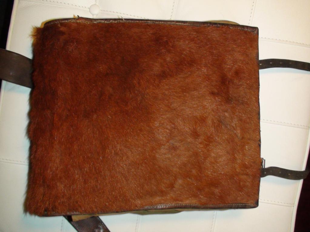 Ранец "Обизьяна". Ранец 1937 год. Ремни 1936 год. Сосотояние на 4+. Порывов нет. Мех абсолютно целый. Не лезет. Ремни,пряги целые. Клеймо ранец A.Waldhausen Koln 1937 Цена 80 USD.
