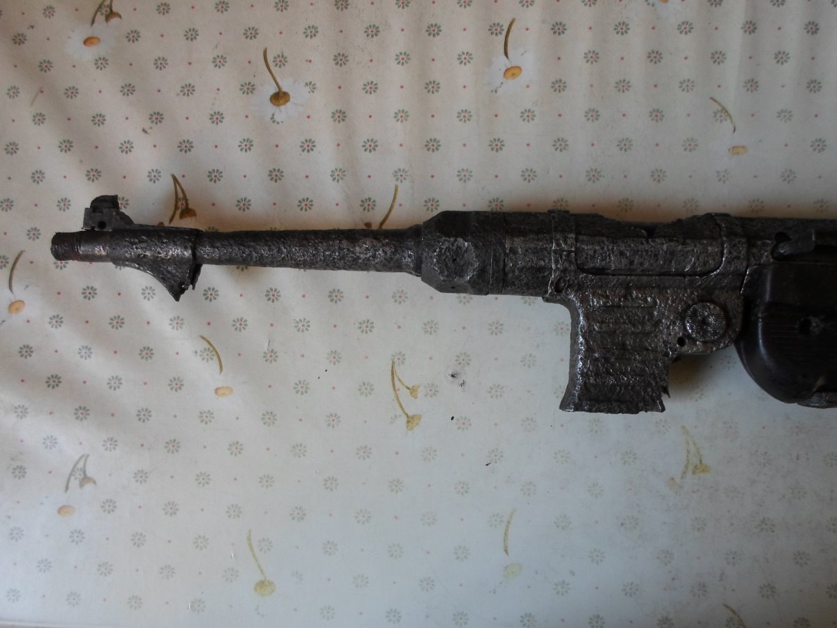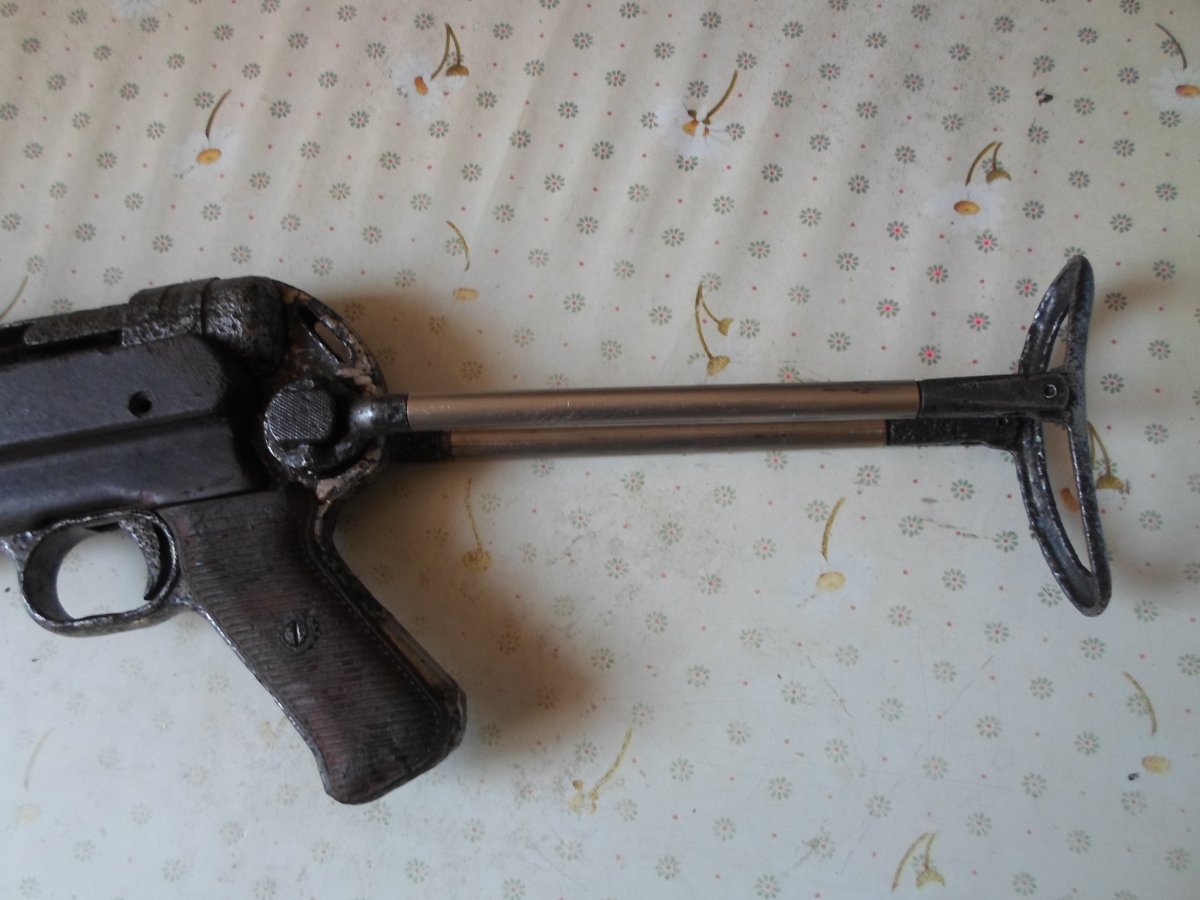 Доброго дня! Уважаемые камрады, прошу оценить данный образец. Состояние на фото. Собирался делать для себя, но жизнь вносит свои коррективы. Недостатки - плешь в районе выброса гильз, подъеден магазиноприемник, приклад с новодельными трубками, примят верхний ресивер, бакелит оригинальный но клееный, рукоять варилась (есть вставка). Но в целом всё двигается и разбирается штатно. На бочке проглядывается клеймо МР 40 и ayf 41 Стволик залит металлом. Дополнительные фото могу сбросить по запросу. Спасибо всем мнениям!