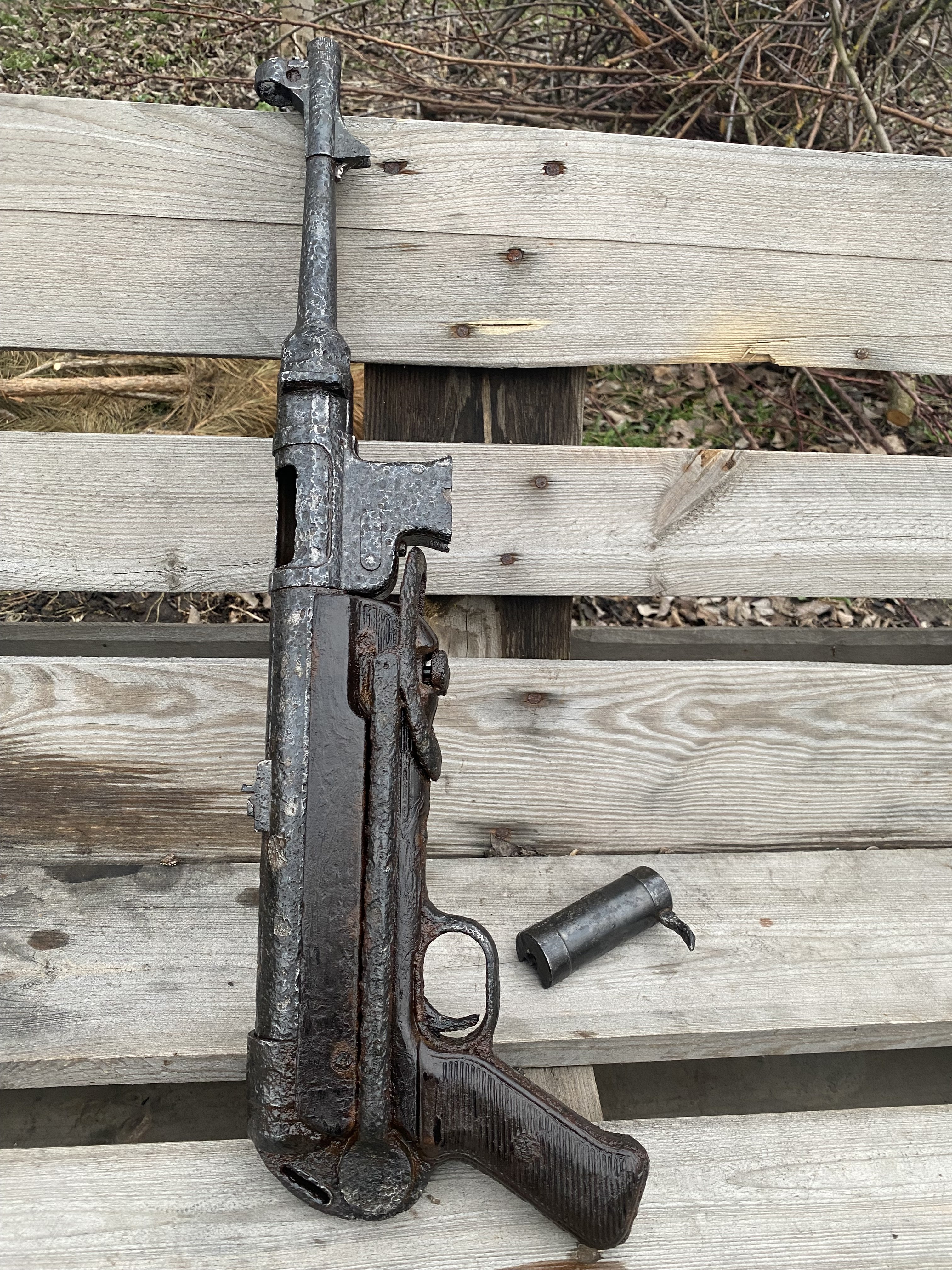 Лучшее что можно придумать на мой взгляд с предметом, это вымыть его хорошо, сделать рамку и залить его полностью эпоксидной смолой как на фото. чтоб дальше не разрушался и не считался огнестрелом. Ценник видится вокруг 300у.е.