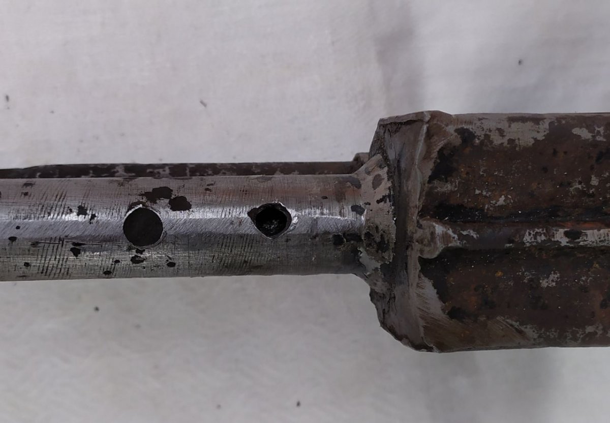 Пружины все рабочие,предохранитель и переводчик огня в норме.Внутри отличный,может найдут затвор.На стволе возле отверстий следы от напильника.Перед сверлением немного подровняли площадку,чтобы сверло не ерзалось