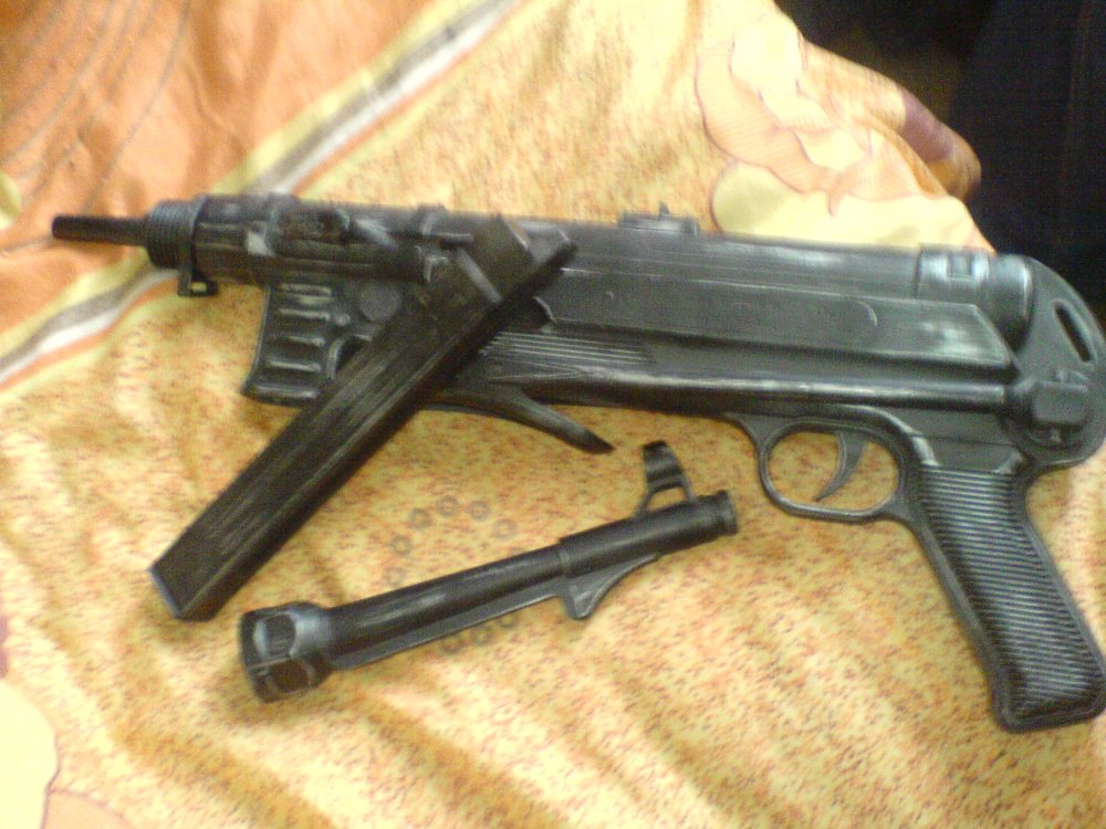 мп- 40 пластик стреляет шариками окрашен под цвет метала сверху черной матовой начал делать так и не закончил где бакелит нужно коричневым покрасить и затереть по лучше 250гр.+пересыл высылаю наложенным платежом новой почтой.