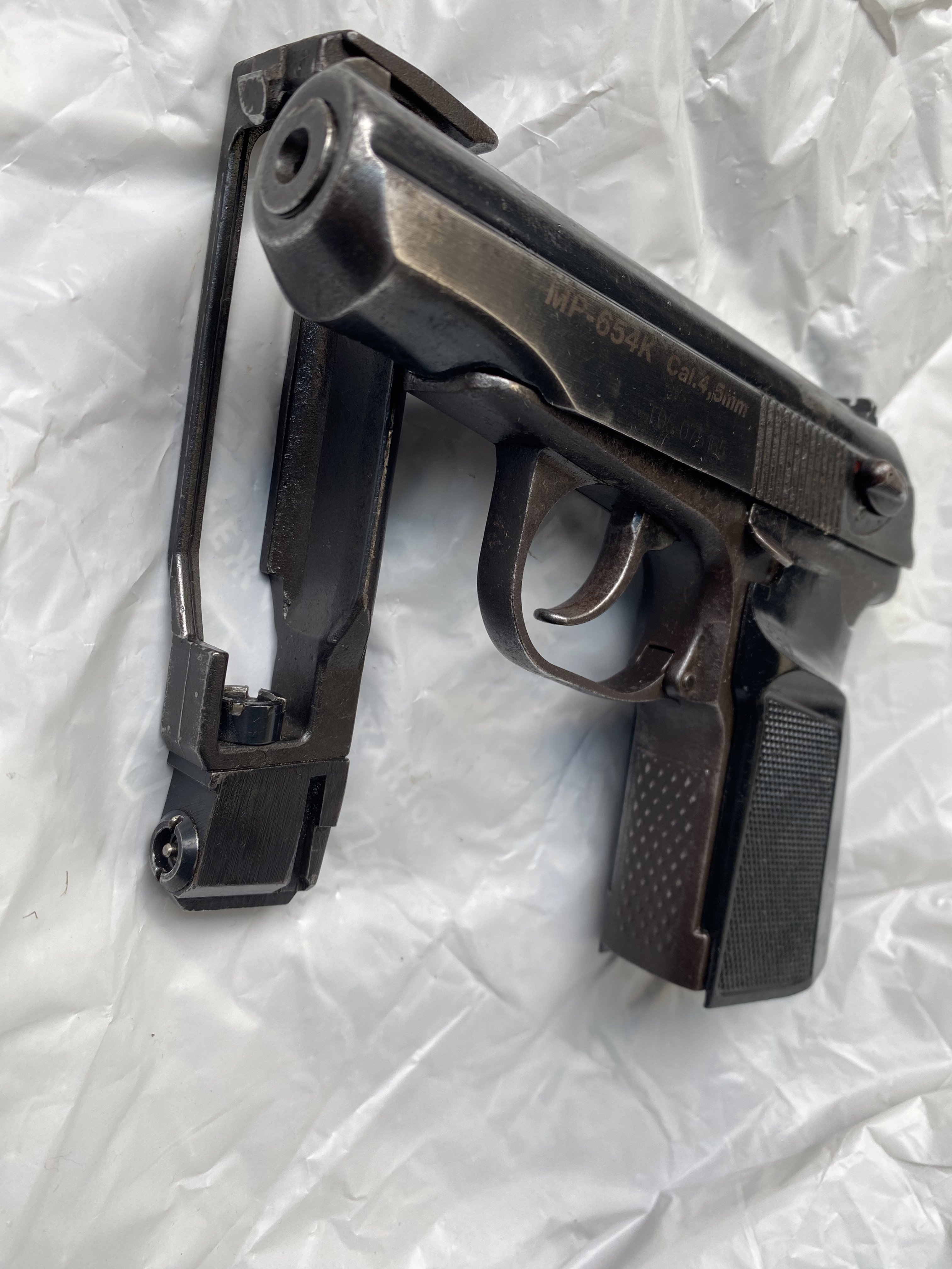 Продам МР-654к 2005 року. У комплекті пістолет, ремкомплект прокладок, кобура. Робочий, зовнішній стан по фото. Ціна 6700 грн, хороший торг реальному покупцю, оплата на картку, відправлю НП.