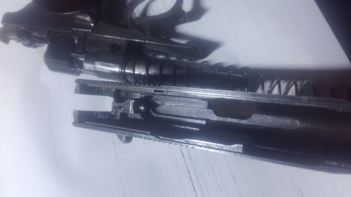 Собственно продам пневмат друга,минус не родной ударник, а так состояние отличное, не травит, стреляет точно, на 10м кришки сбивали с него, стоит бакалитовая рукоять , с боевого переделанная, фигурная скоба и шикорий целик, ствол под 9 мм, дутая зз. Хотела 2700, можете предложить свою в личку с ув.