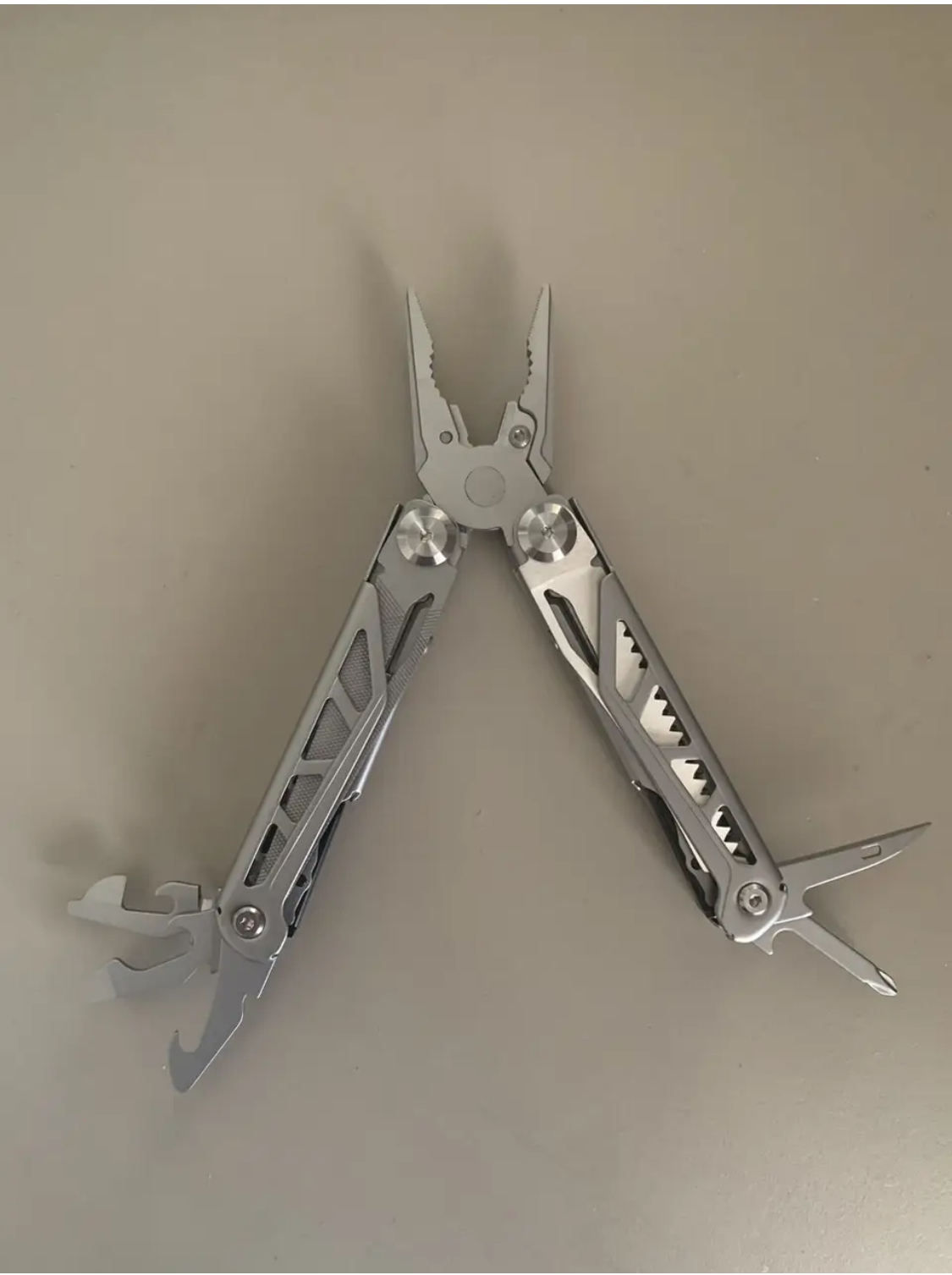 Якісний новий оригінальний мультітул від компанії Pentagon европейського виробника тактичного спорядження. Мультитул Pentagon Gunnar Multitool - комплексне рішення для різних завдань. Виготовлений із високою точністю з неіржавкої сталі 440 для леза та ножиць і неіржавкої сталі 420 для додаткових компонентів, і все це в міцній ручці з неіржавкої сталі 420. Цей універсальний інструмент містить голчастий і звичайні плоскогубці, кусачки, лезо, ножиці, універсальний різак, відкривачку для пляшок із плоскою викруткою, консервний ніж із плоскою викруткою, хрестову викрутку, розвертку, металевий напилок, лінійку, пилу та засіб для зачищення дротів. Виробник компанія Pentagon, Греція. Компактний розмір 11 x 4,2 x 1,8 см, це ідеальний інструмент для універсальності та зручності. СПЕЦІФІКАЦІЇ Компоненти: 440 Неіржавка сталь (лезовиті/ножиці) Ручка: 420 Нержавіюча сталь Плоскогубці з голчастим носом Звичайні плоскогубці Кусачки Лезо Ножиці Універсальний різак Відкривачка для пляшок із плоскою викруткою Консервний ніж із плоскою викруткою Хрестова викрутка Розвертка Металевий напилок Лінійка Пила Стрипер для дротів Розмір продукту: ШхВхГ: 11 * 4,2 * 1.8 см Вага продукту: 265 г Ціна 2000 грн