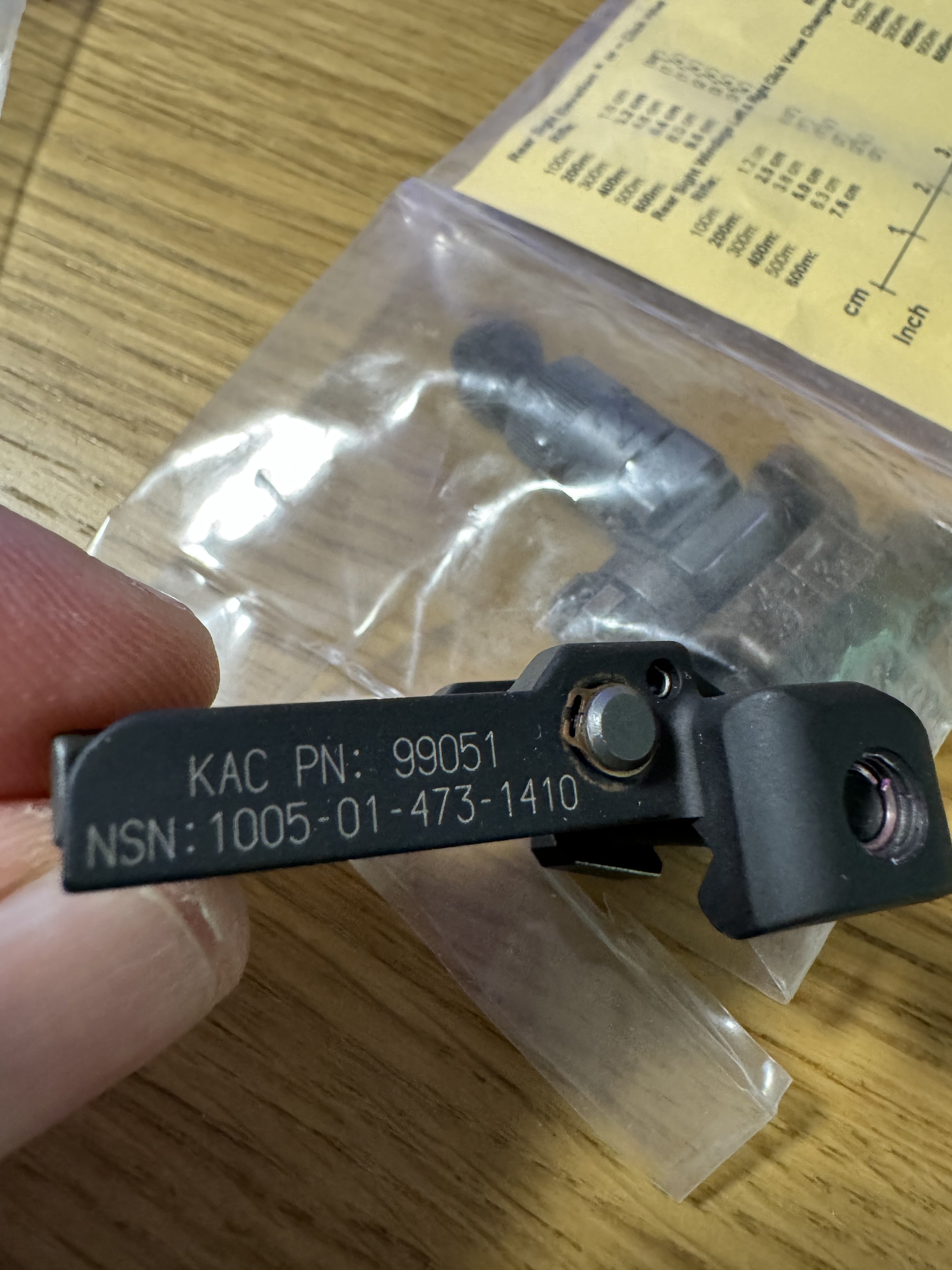 мушку від відомого Амереканського виробника KAC , мушка для армії США, є NSN, не цівільна версія , а саме для армії. Єкмперти кажкть є якась в цьому різниця в бік армійської