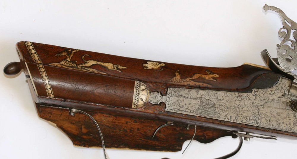 Продолжил работу над крышкой. Подогнал метал с деревом. В металле просверлил отверстия, нарезал резьбу, подобрал болтики. Нанёс рисунок с помощью гравёра. В переди чуть над ней поработаю, пока нет ложе и не знаю что дальше делать. Знакомый с деревяшкой на ложе подвёл. Болты не стал маскировать а на оборот их подчеркнул и включил в рисунок. Тем более на мушкете болтов круглых полно, и ещё пару кружочков не помешает. Сделал замену бумажных частей на деревянные.