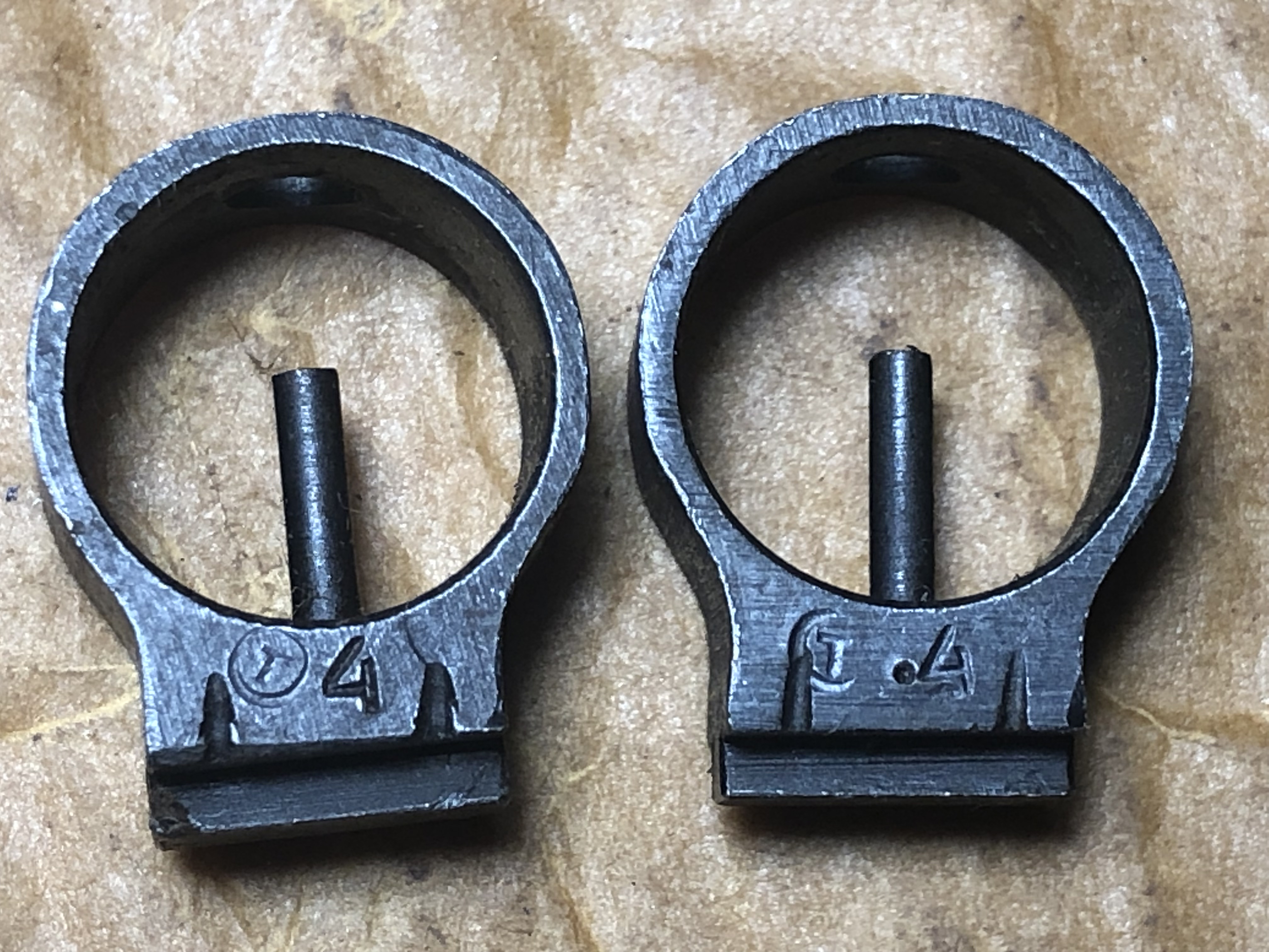Перша мушка - тула для іжевська (кінець 20х, початок 30х). По другій нічого не видно, але сенс той самий. Типорозмірів радянських мушок існує 3 види, а от цифри 2,4,6,8 або ж .2–.8 вказують лише на висоту піна.