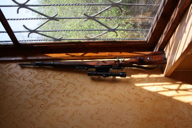 Собстна спустя долгие месяцы и откладывания на потом, я все-таки довел свои маузеры до нормальной кондиции))) На первом поменял дерево, затвор с убитого под охоту на старого рабочего чеха, прилив под штык нож, короткий шомпол и оригинальный ремень. По человечески удалить кроны не получилось, но лучше уж так, чем как было))) Итого вышел такой аццкий сборняк: железо 35 года, дерево немойми какого когда, но оригинал, затвор чех в ВЗ-тки и широкое кольцо позднее 45 года. Такой себе призрак последний дней рэйха))) Вопщем прошу сильно не пинать)))
