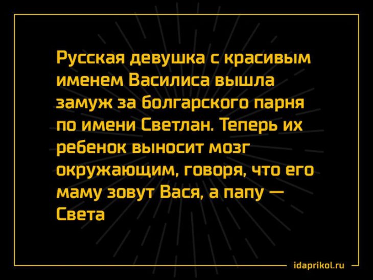 Дед у меня финно-венгр.Бабушка встретила деда в Коми-Пермяцком округе.Там есть их поселения.Язык отличается от русского.Например,ложка-пуня,ножик-порт.А самое любимое у нас с братьями было слово деньги,и мы все просили бабушку его сказать.Так вот,деньги на удмуртском -коньдонь А она не понимала чего это мы валяемся от хохота У них был обычай -весь поселок собирался на освящение нового дома.По обычаю первой в дом должна войти хозяйка.И вот сам обряд,значит.Хозяйка садилась в центре дома на стул с иконой.А хозяин должен был трижды обойти дом.Говор отличается,так как язык дал свое влияние на русский.Не пугайтесь ,так и надо Так вот,хозяйка спрашивает-кто кодит?(кто ходит?),а хозяин в это время начинал обходить дом ,тоже и иконой.И отвечал -Бог кодит,хлебом-сольом носит(Бог ходит,хлеб-соль носит).И вот хозяйка,значит, второй раз спрашивает,он ей чин по чину ответил.Около дома у них была яма под овин(в яме делали печь,под полом,а наверх у сушили снопы перед молотьбой).И вот хозяин дал круг видно шире обычного И когда хозяйка спросила -кто кодит,он грохнулся в яму Она слышит что он молчит,и переспрашивает-кто кодит.А он из ямы и орет х#й кодит,ёб@ную мать носит Интересно,как им потом жилось в таким образом освященном доме? Извините за матершину