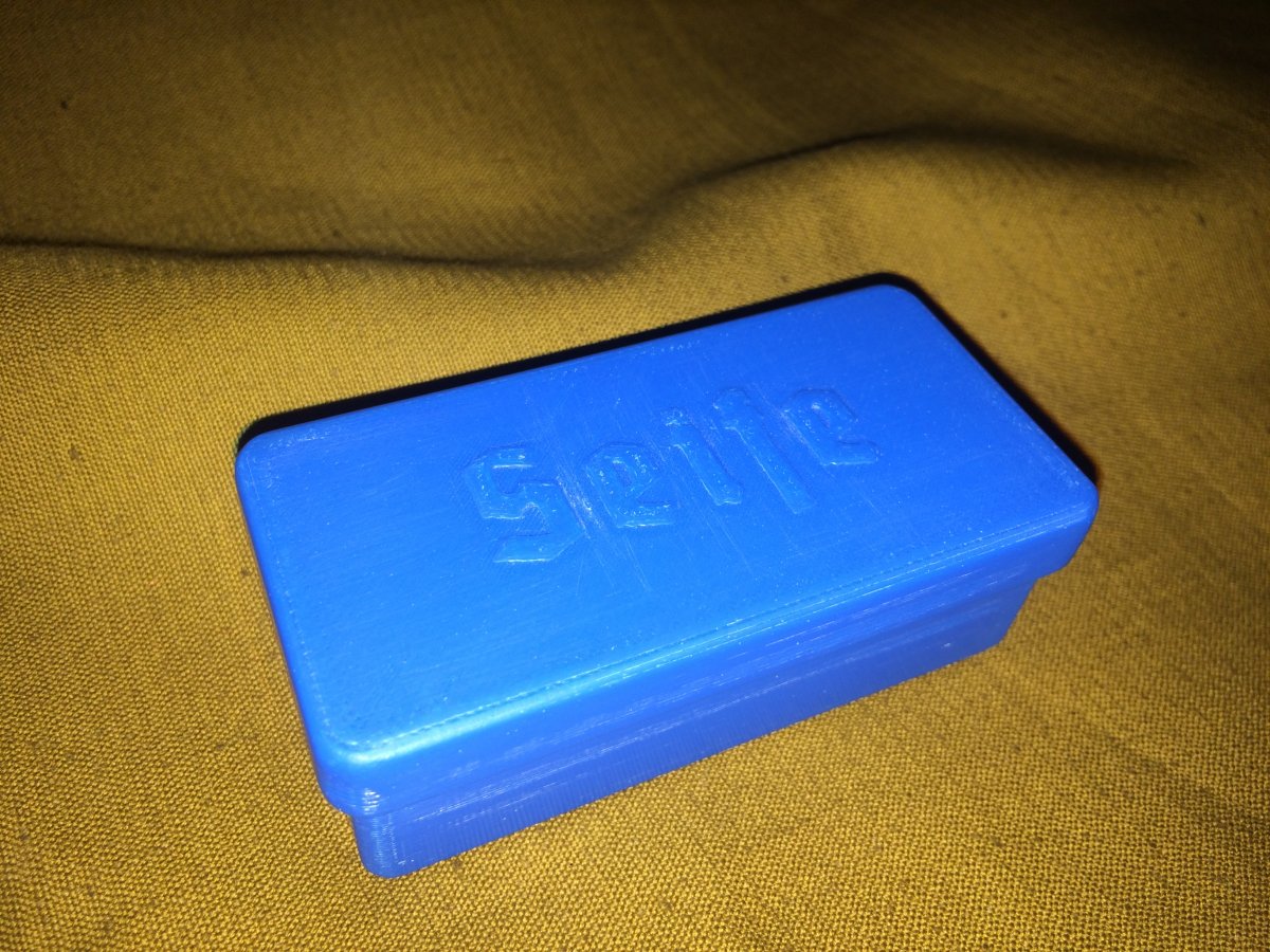 Здравствуйте, изготовлю на заказ мыльницы Seife как в каталоге личных вещей солдат Вермахта. Не бакелит, но использовать можно по назначению и не боятся что поломается столь нечастая вещь. Материал пластик 3D печать. Снаружи обработана, внутри нет. Возможно нанесение других надписей или изготовление других размеров. Время изготовления зависит от сложности и загруженности. Лот №1. Черная мыльница Seife 8x4x2.5 см. PLA пластик, печать, обработана, но есть моменты (видно на фото). Закрывается плотно и достаточно трудно открыть. Цена продан.