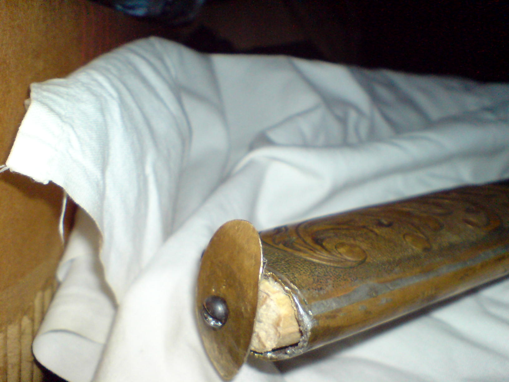 По этим фото не помять ничего,то ли творчество народное,то ли народное китайское. Вы бы дали фото клейм,если имеются,и покачественнее. Темляк можно к шторе пришить - к шашке не катит.