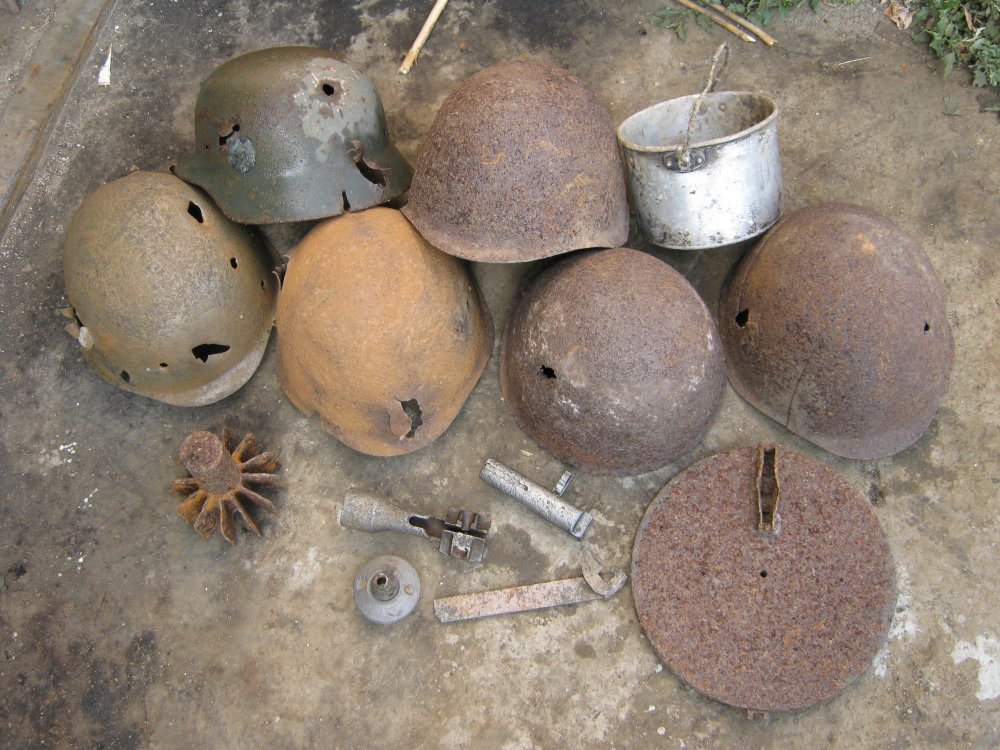 В окопе рядом с ппш была каска сш-40 тоже вся в осколках, фото чуть позже выложу,те места с нашими, немец хорошо миномётом обстрелял