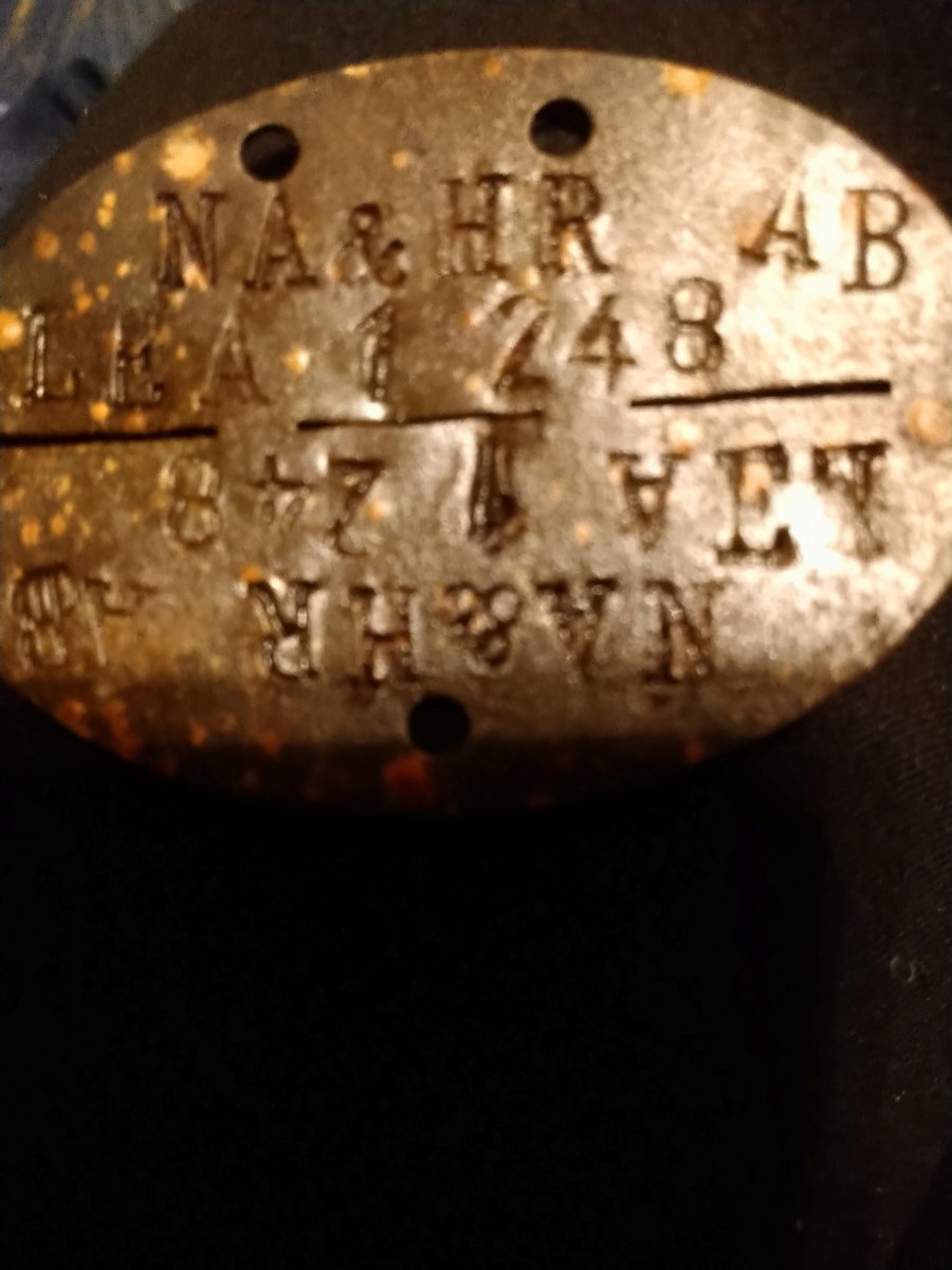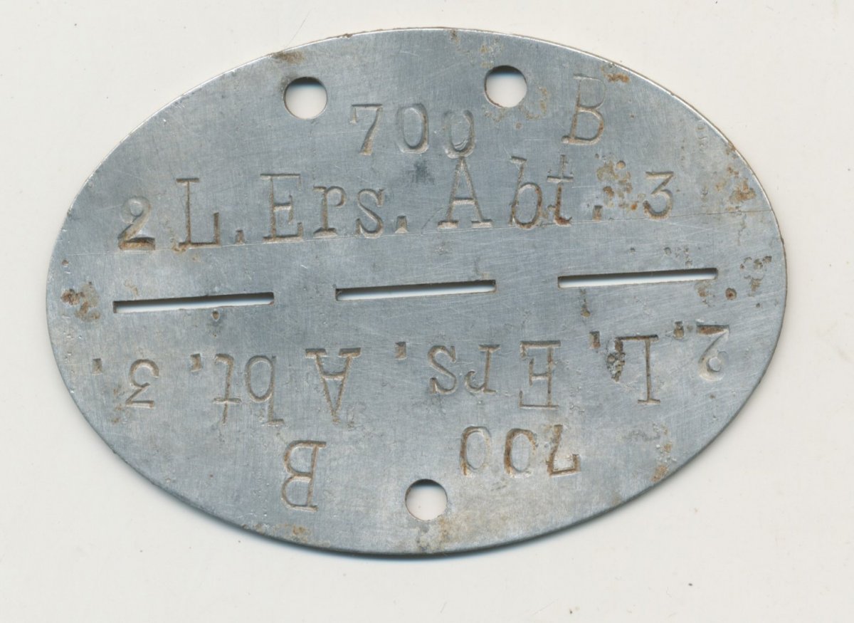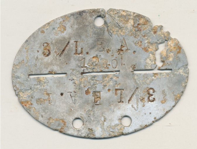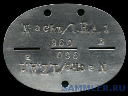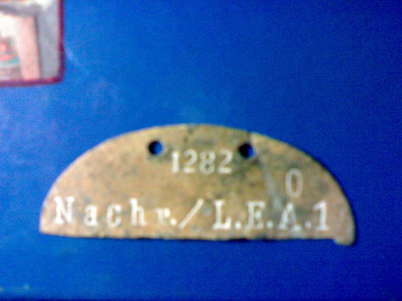Я не говорю про Nachrichten Ersatz Batterie. Такая батарея была в Artillerie Ersatz Abteilung 179, наверное и в Artillerie Ersatz Abteilung 75 (информации нет), но такой не было в Artillerie Ersatz Abteilung 1. По этому на жетоне нет набивки Nachr.Ers.Battr. 1. Жетон связиста (рота, взвод ?) из подраздиления L.E.A. 1.