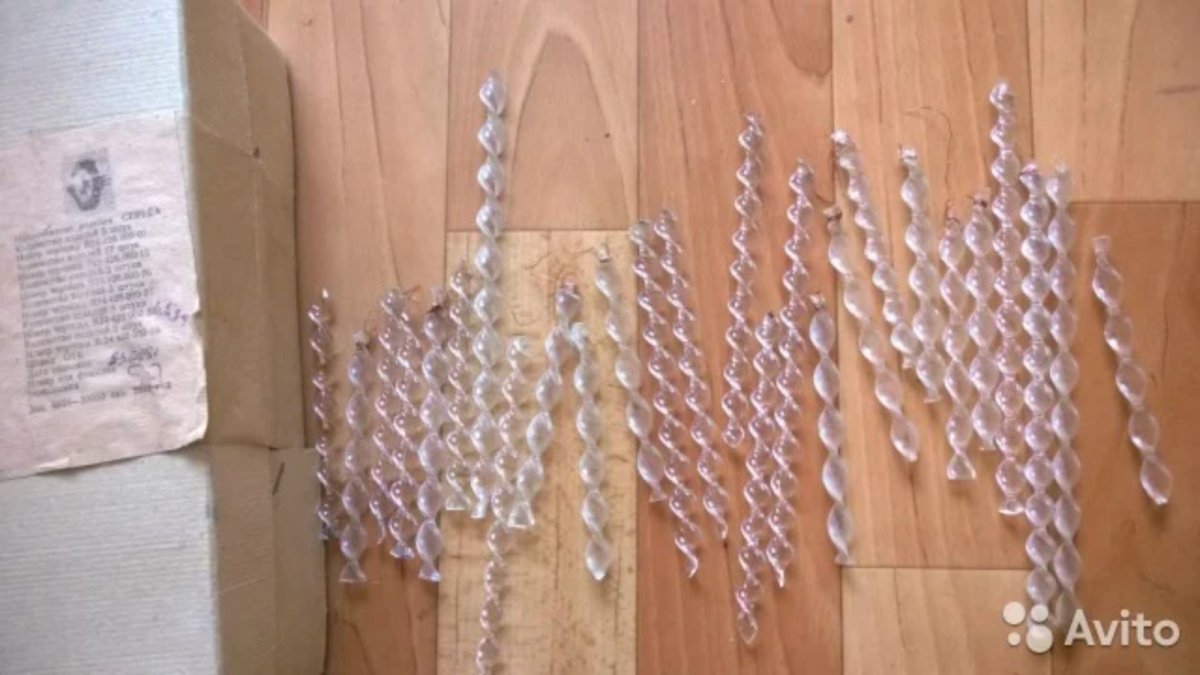 Приветствую. На чердаке старого дома найден коробок с елочными игрушками 60-х годов. Там же были такие витые стеклянные палочки с проволочками. Хозяин заявляет что эти палочки - елочные игрушки, которые ставились на ветку вертикально и прикручивались проволокой, получалось что-то типа свечки. Что это был набор из разноцветных "свечек" и стоит многа денех. Я думаю что это от люстры висюльки, а проволочка - заколхоженное крепление, и эти все приспособлено для украшения елки каким-то смекалистым хозяином или хозяйкой. Что скажите? Может кто сталкивался с подобными игрушками? Или висюльками. Спасибо.