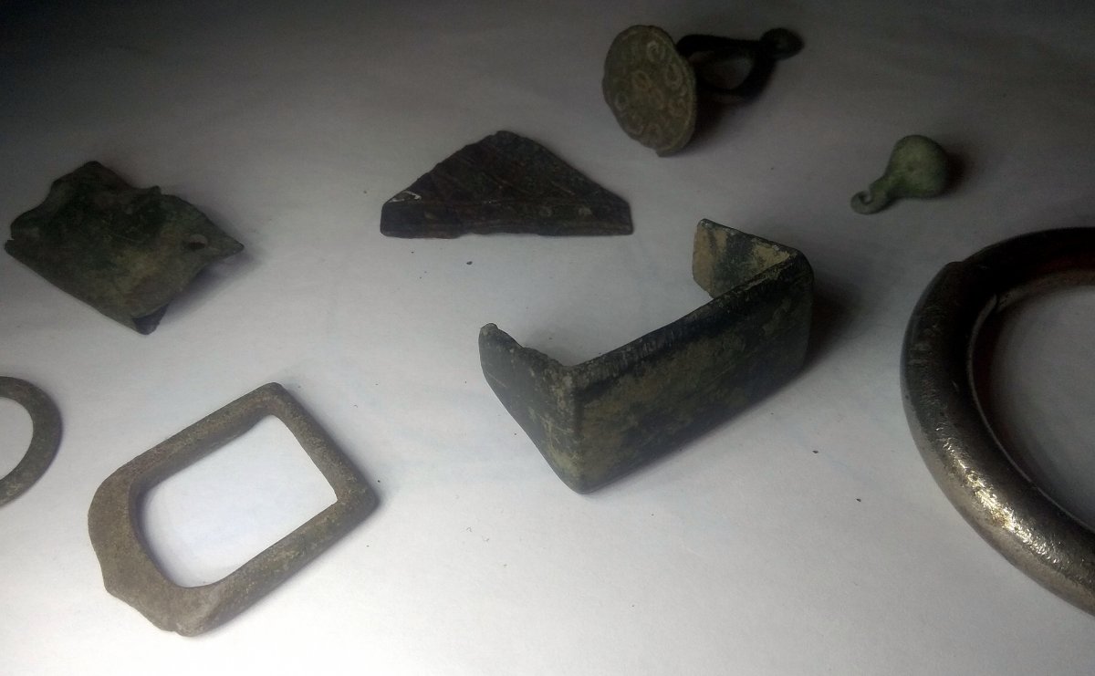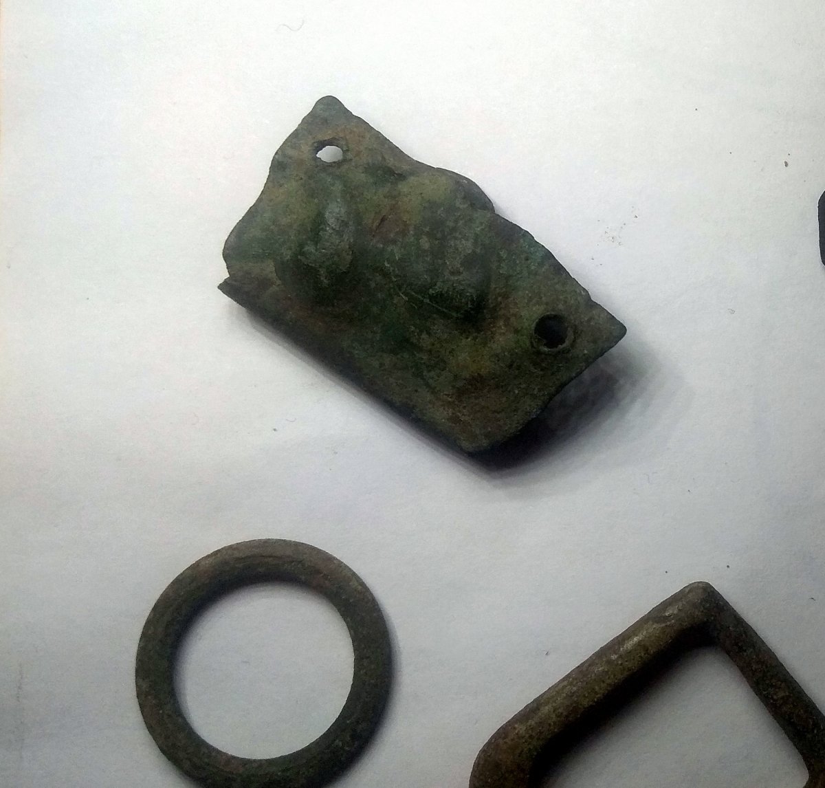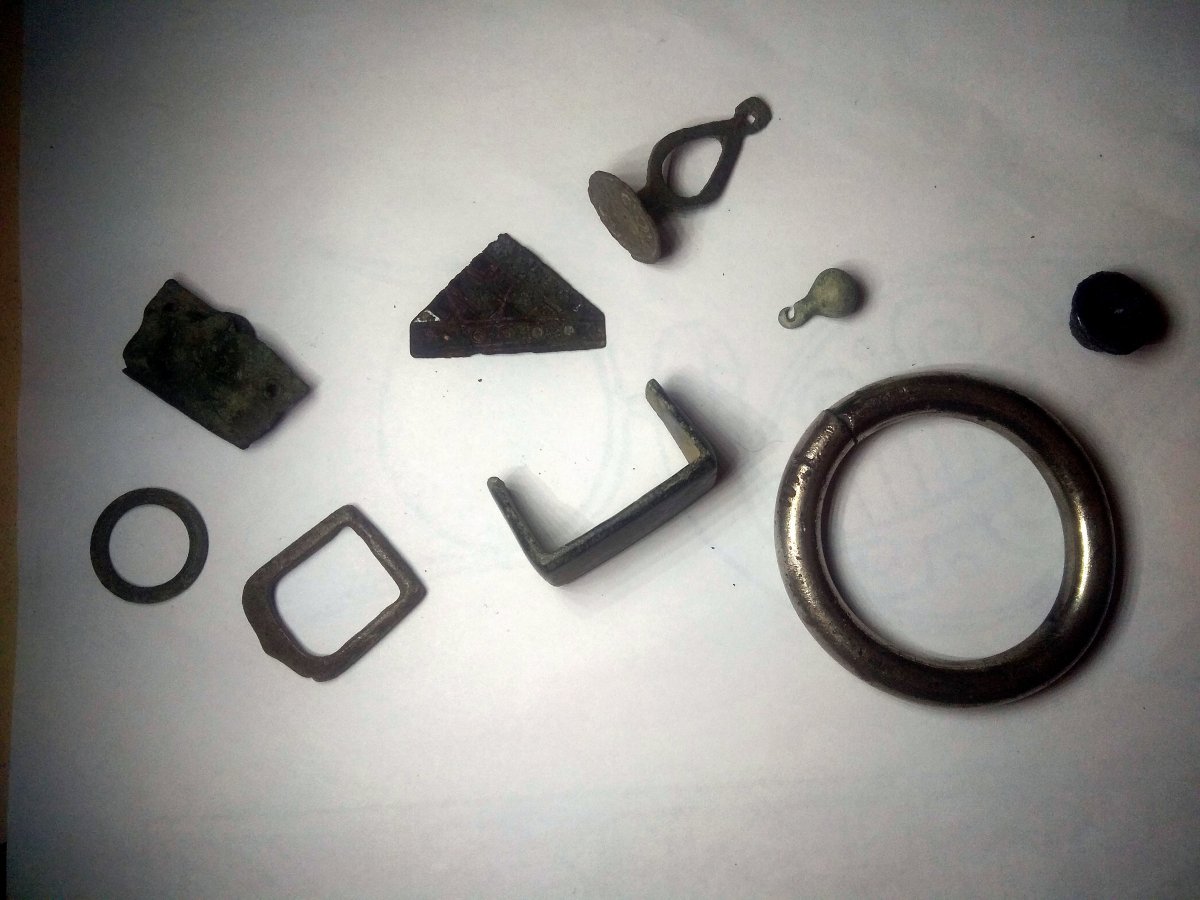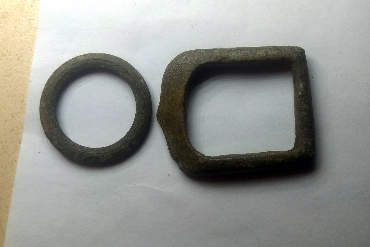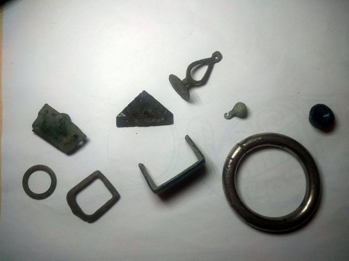 Приветствую, уважаемые камрады. Подскажите, пожалуйста где что и чьё.. Всё найдено в радиусе 30 метров (киевская область) Ещё была медная чешуйка (откисает). Большое кольцо - бронза или медь в покрытии, может посеребрение...65.92 гр.