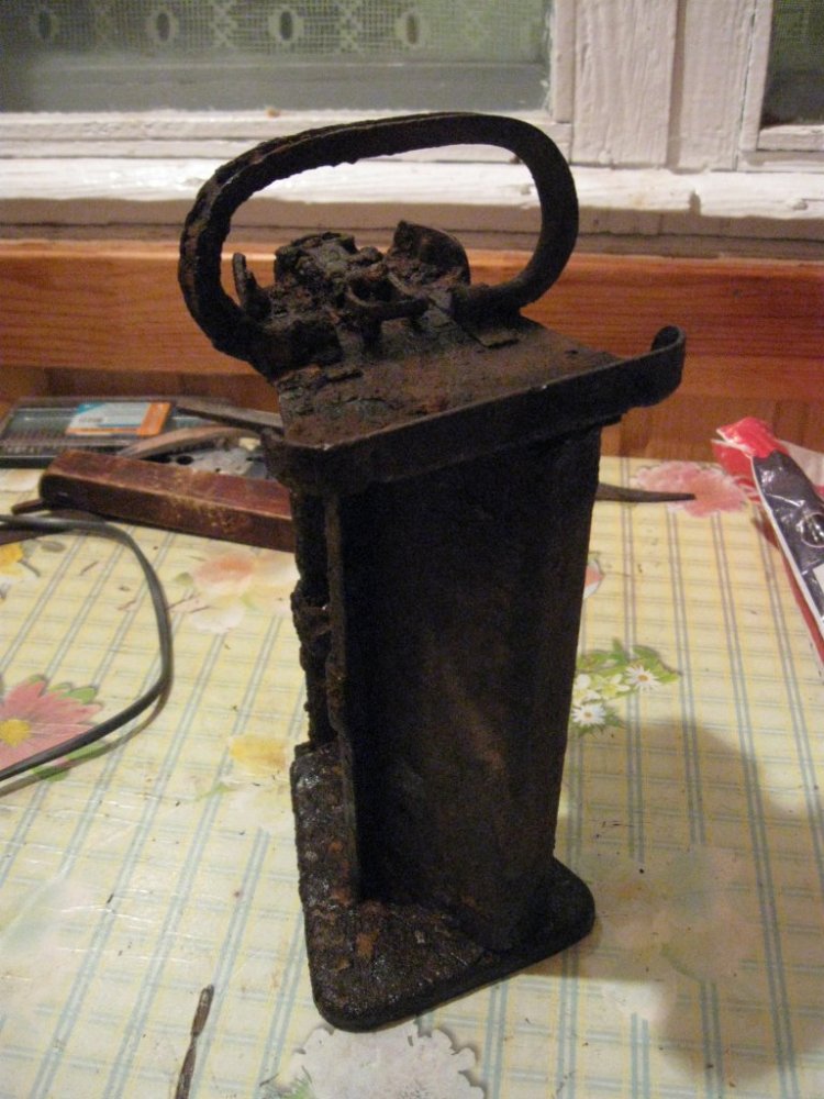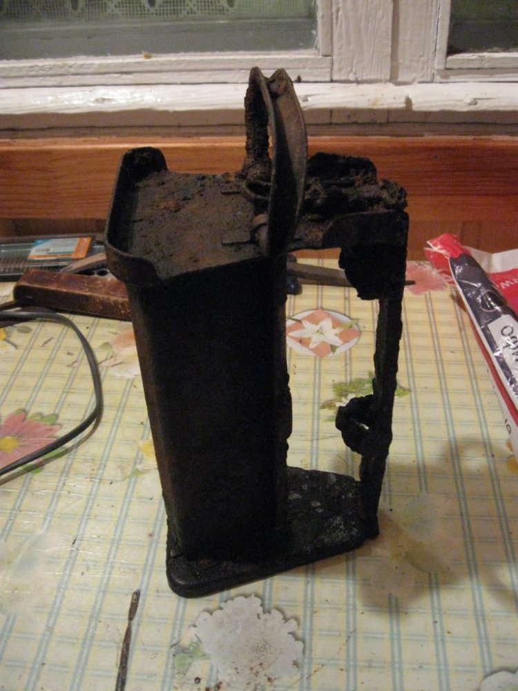 Механический воспламенитель для зажигательной бутылки. Скорее всего отказник, верхняя гильза детонатор, нижняя - воспламенитель, набиты всяким взрывчато-зажигательным г..ном соответственно.