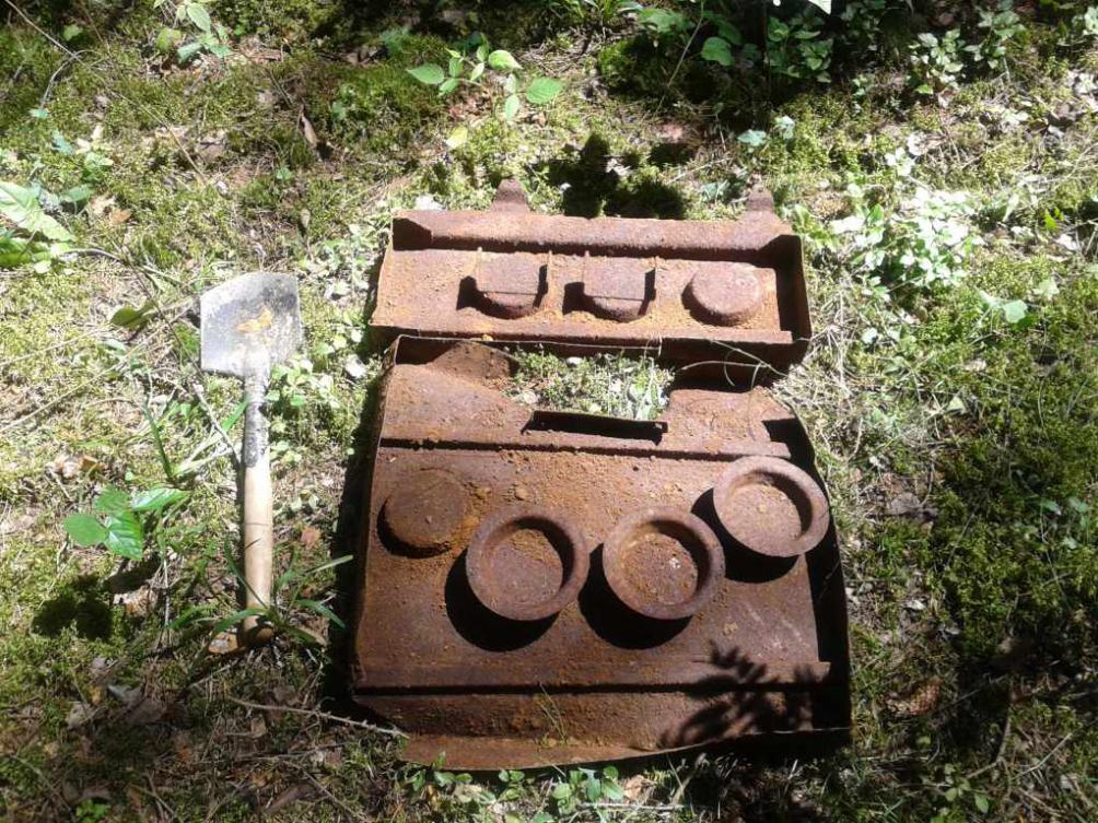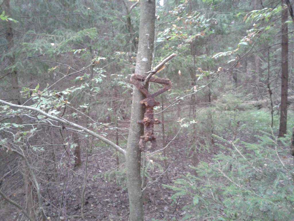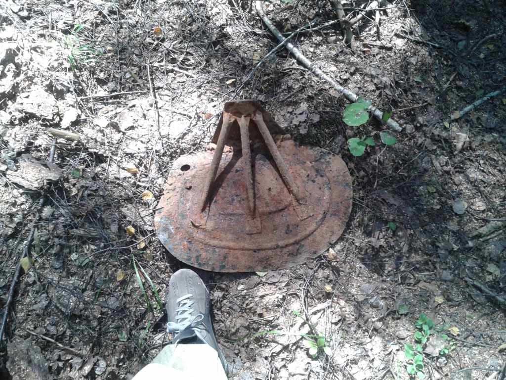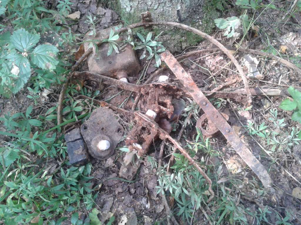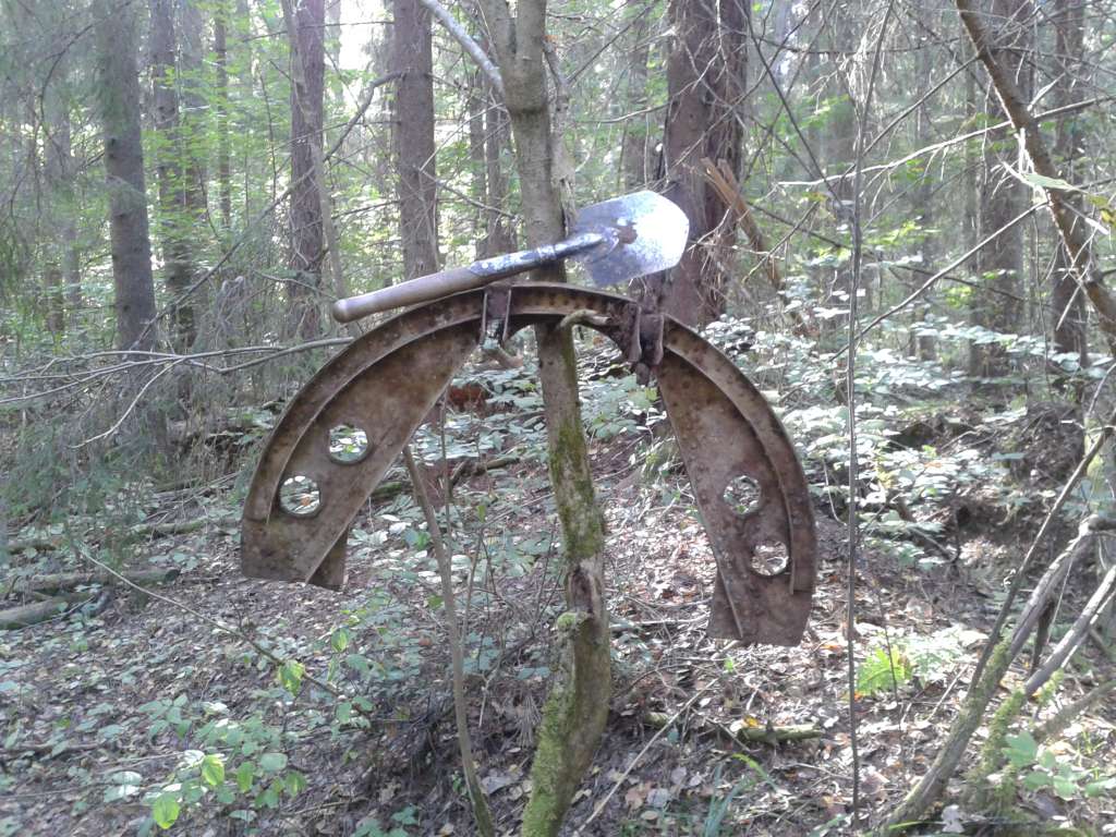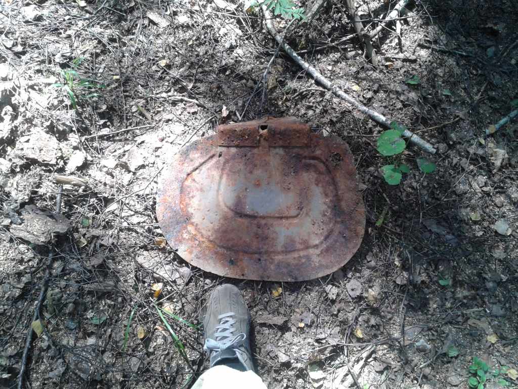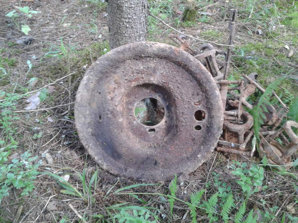 Внутренняя часть какого-то большого колеса. Саперкой не осилил выкопать из блина, засосало намертво. Может кто увидит знакомые черты и определит от чего. Сопутка - переноски для 105 мм. снарядов, гансы.
