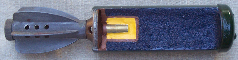 Всем доброго здравия! Уважаемые комрады, помогите определить ВОП. Прошу прощения за качество снимка и за отсутствие масштабной привязки. Размером с 50-мм миномётку, алюминиевый стабилизатор, в хвосте вышибной. С ув.