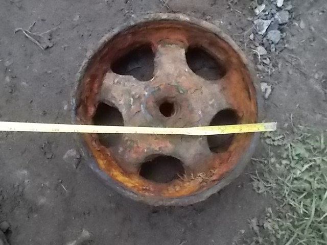 Добрый день! Каток с ходовой тележки трактора типа Т-74, ДТ-75. Ручка с винтом - предполагаю с какого бытового преса.