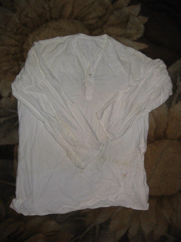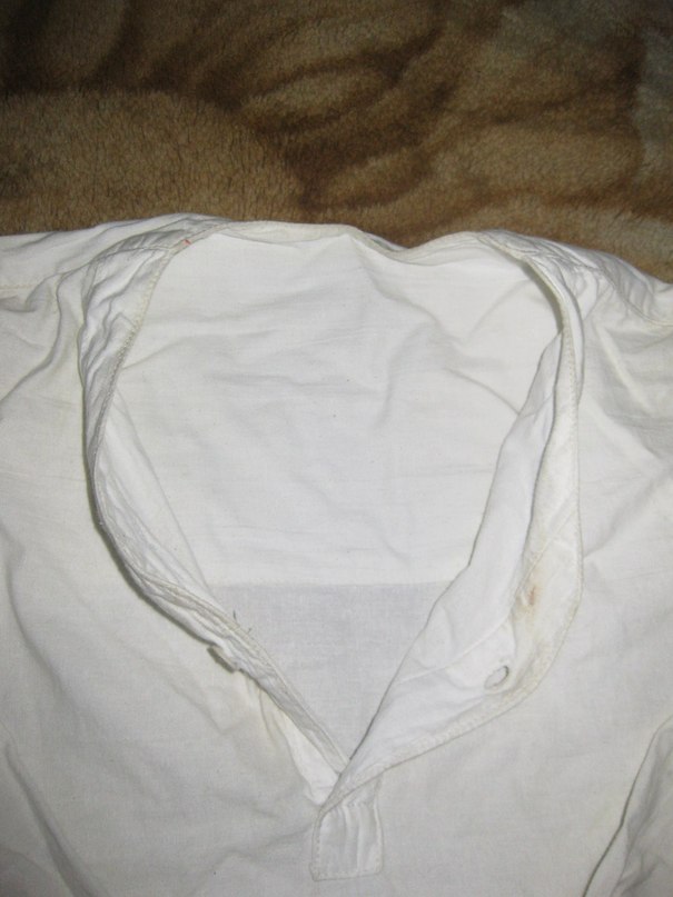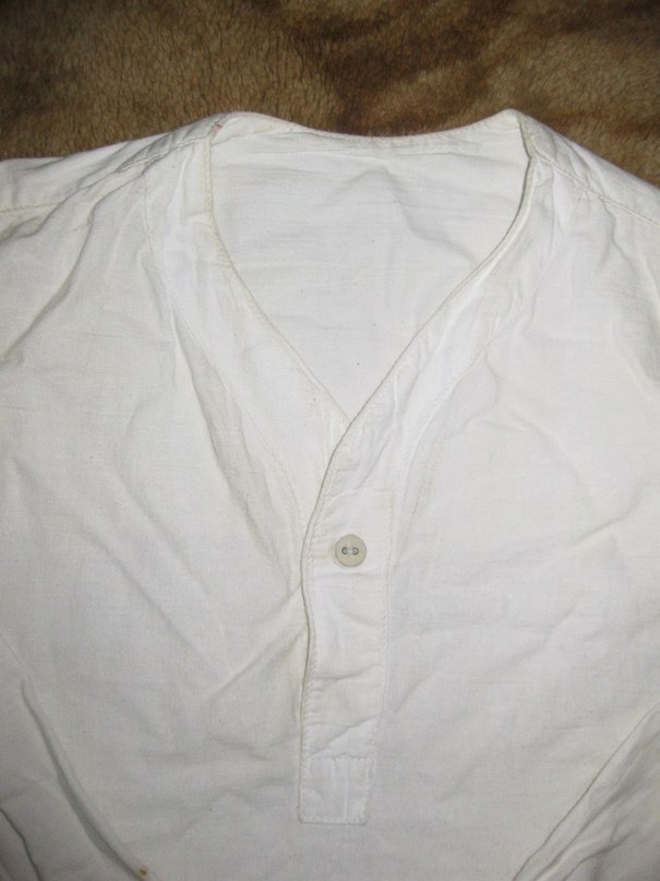Очень важен вопрос о нательном белье: были во время войны, наряду с х/б бязевой (холодной), бумазейное (теплое) нательное? Ворот на рубахе V-образный или стойка?
