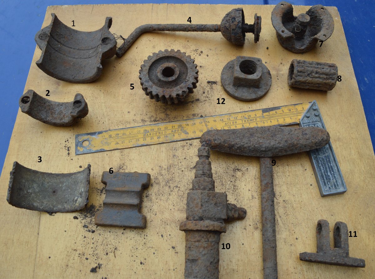 Приветствую.Детали №1,2 напоминают нижнюю часть шатуна,а деталь №3 похож на вкладыш.С ув.