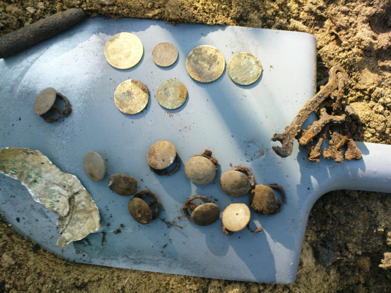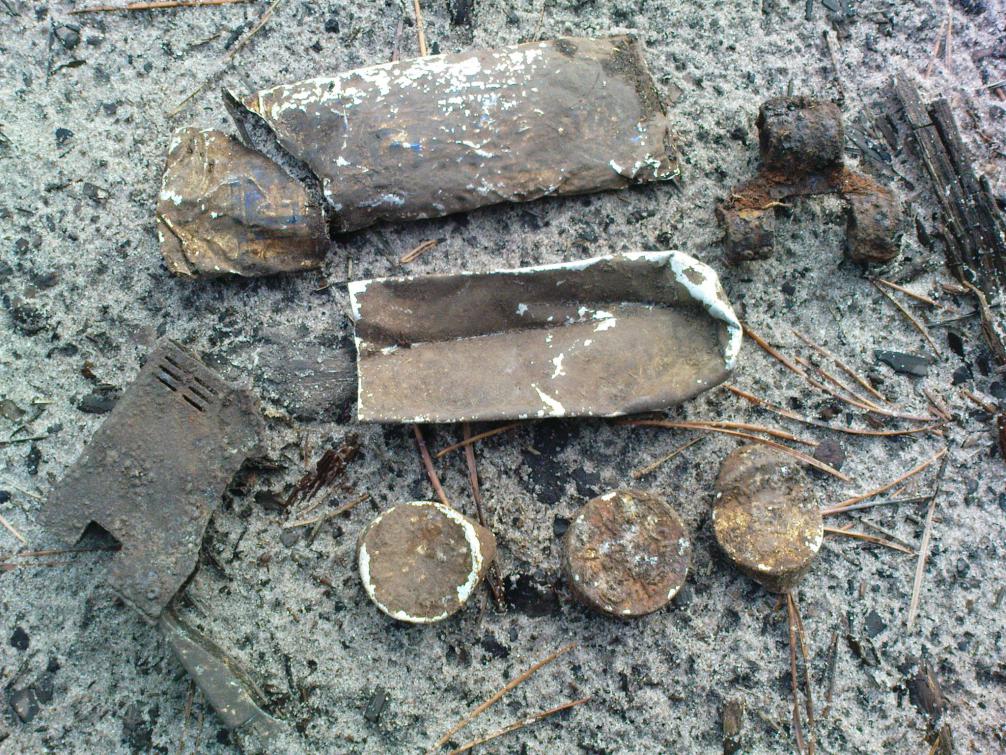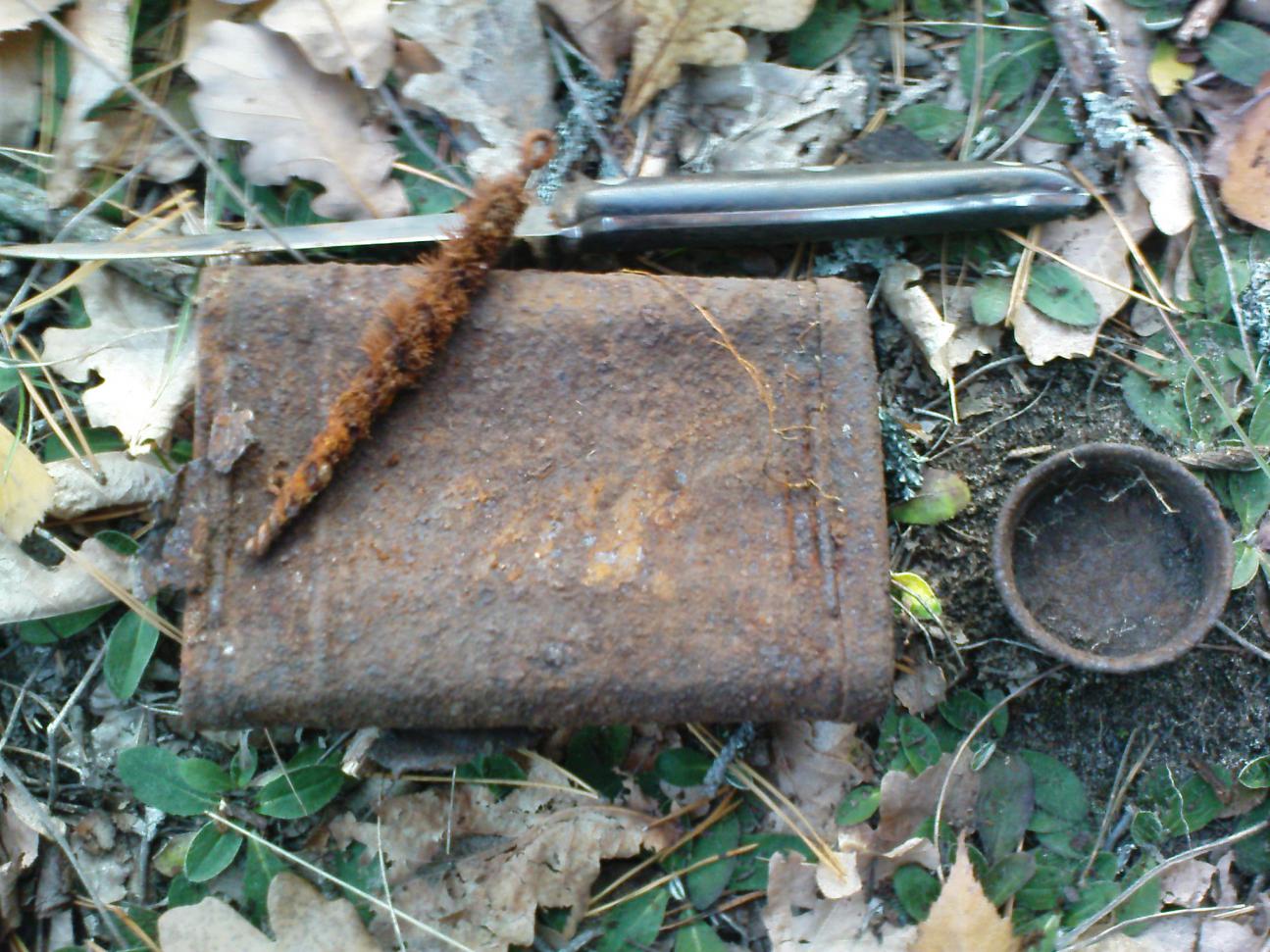 сегодня сходил на место где сам был 6 раз да и другие похаживали) МД с жуткими глюками из-за плохого разъёма работал плохо но чтото я всётаки нашёл: 12 пуговиц с ганс кителя,с десяток советских монет и один рейсхпфенниниг 40г,кусок упаковки от плавленого немецкого сырка и немного ВОПов((