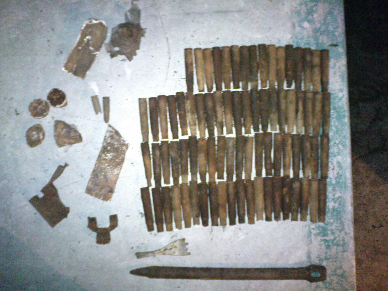вот снова выбрался туда итог-около сотни латунных гильз от маузера (пулемётчик насорил),колышек,звено от ленты походу под мосинский патрон,тюбик с порошком,3 пробки от ганс бырла,фрагмент зажигалки,лопатка (но жаль незнаю чья) лопатку фоткал уже в темноте ьак что фото