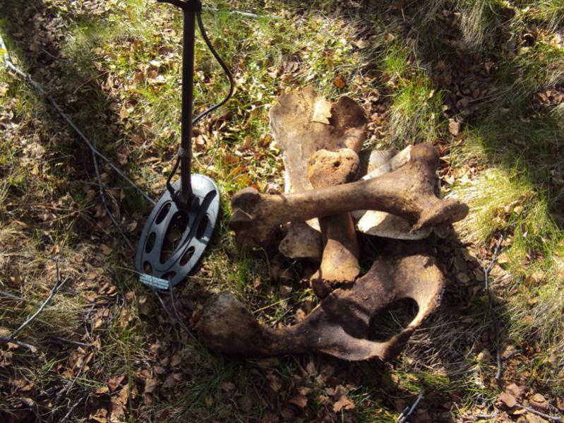 В воскресенье продолжили поиски, так как судя по блиндажам должна быть рядом ещё одна. Тоже оказалась не очень большой. Судя по мослам большого зверя сожрали Фрицы.