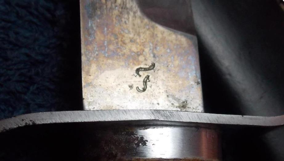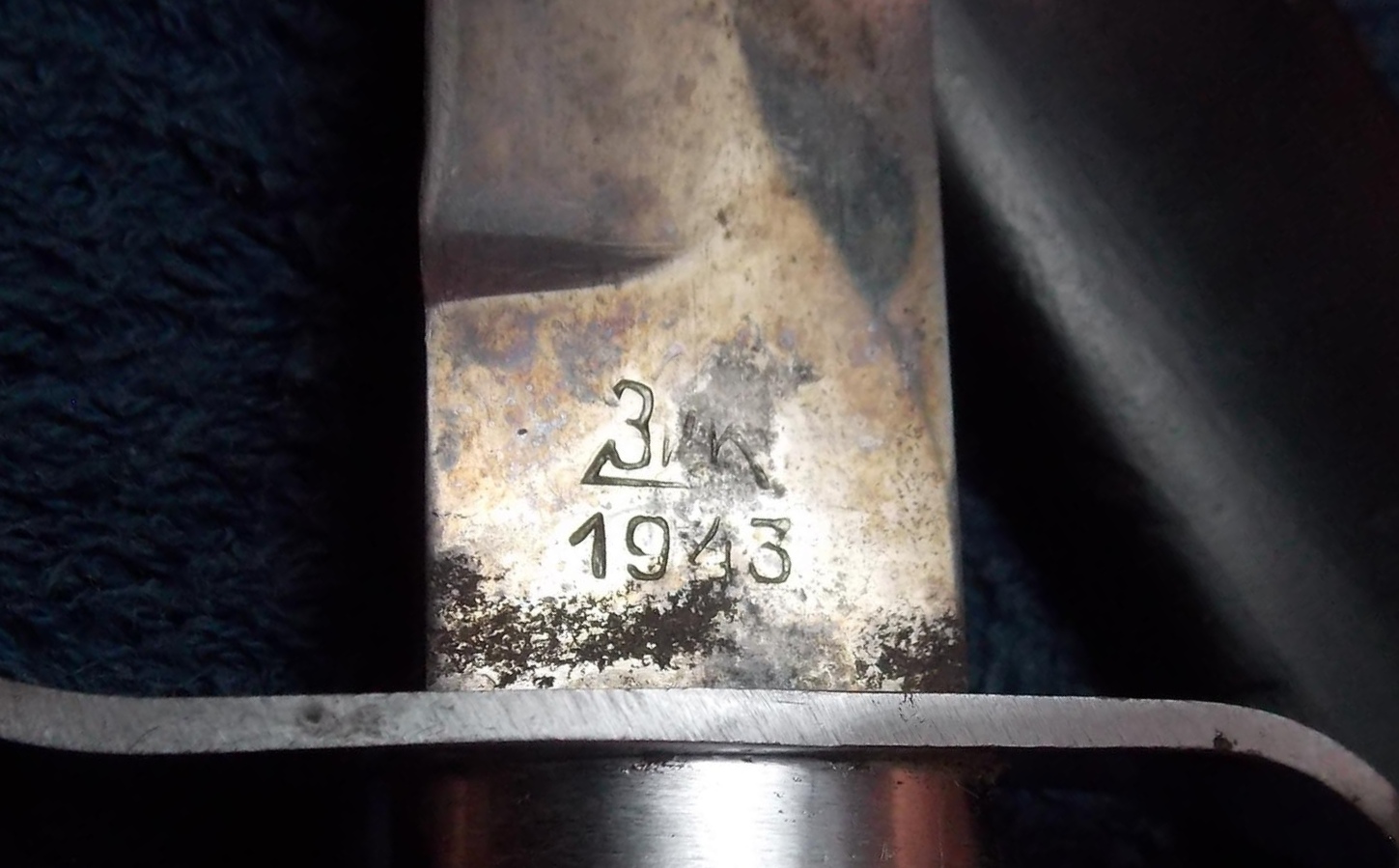Обратите внимание на расстояние от "зик" до года. Оно одинаковое так как это один пуансон, а на том ноже год стоит наискось, т. е. "Зик" и год бились разными пуансонами. Я не берусь спорить про существование таких ножей, но конкретно на этом клейма на левых педалях. "г" кстати тоже подгулявшая.