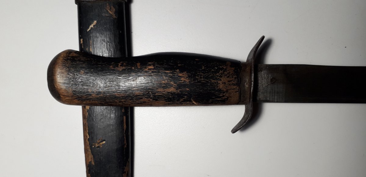 Доп. фото. На клинке еще родная шлифовка. Подвес родной. Остатки родной краски. Родной расклеп.