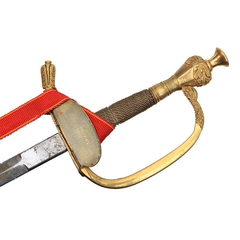 В принципе, атрибуцию провели верно - деталь эфеса шпаги. Только называется она не навершие, а более правильно - тыльник (яблоко). Принадлежал этот тыльник шпаге пехотной офицерской образца 1798 года. Строгую регламентацию в изготовление холодного офицерского оружия в России ввел император Павел I. В 1798 году было установлено, что все офицеры пехоты и кавалерии должны иметь шпаги лишь по высочайше утверждённому образцу, а любые другие, от этого образца чем-либо отличающиеся, в строю не носить. Обе павловские шпаги - пехотная и кавалерийская, были выполнены в русле европейской традиции и имели все характерные для них детали. В первой четверти XIX в. эта шпага была строевым оружием офицеров и генералов пехоты. В 1826 г. заменена у офицеров и генералов гвардейской пехоты и гвардейской пешей артиллерии офицерской пехотной саблей образца 1826 г. В 1833 г. такая же замена произошла в гарнизонной артиллерии, в 1835 г. - в военно-топографическом депо. В 1836 г. заменили морские сабли у генералов по Морскому ведомству, инженеров и классных чиновников по Морской строительной части. В 1849 г. заменена офицерской пехотной саблей образца 1826 г. у всех, кому была положена, за исключением гене рал-адъютантов, а также всех пеших генералов (при общегенеральском мундире). В 1881 г. эту шпагу было разрешено носить при сюртуках вне строя генералам всех войск, кроме казачьих.