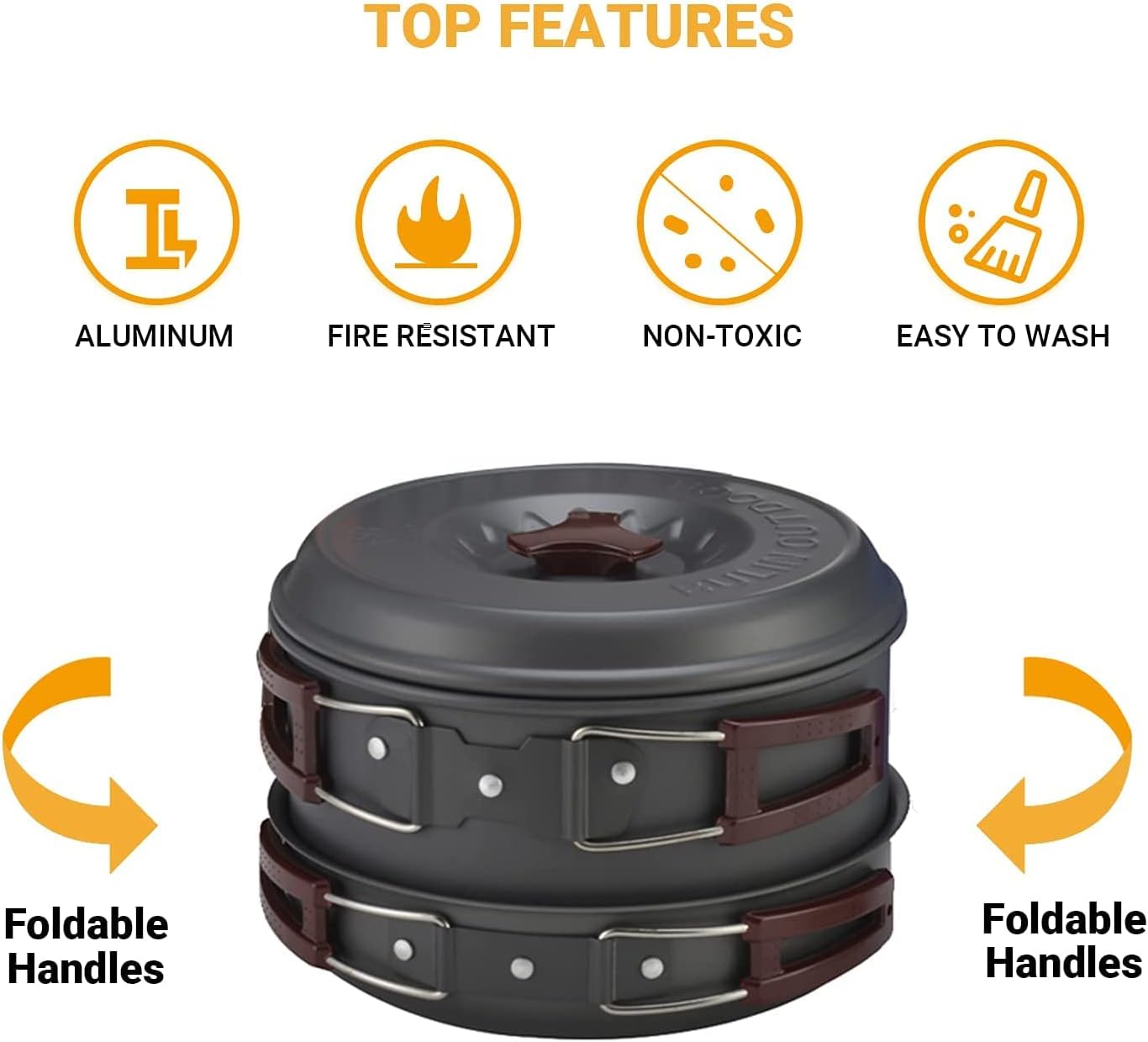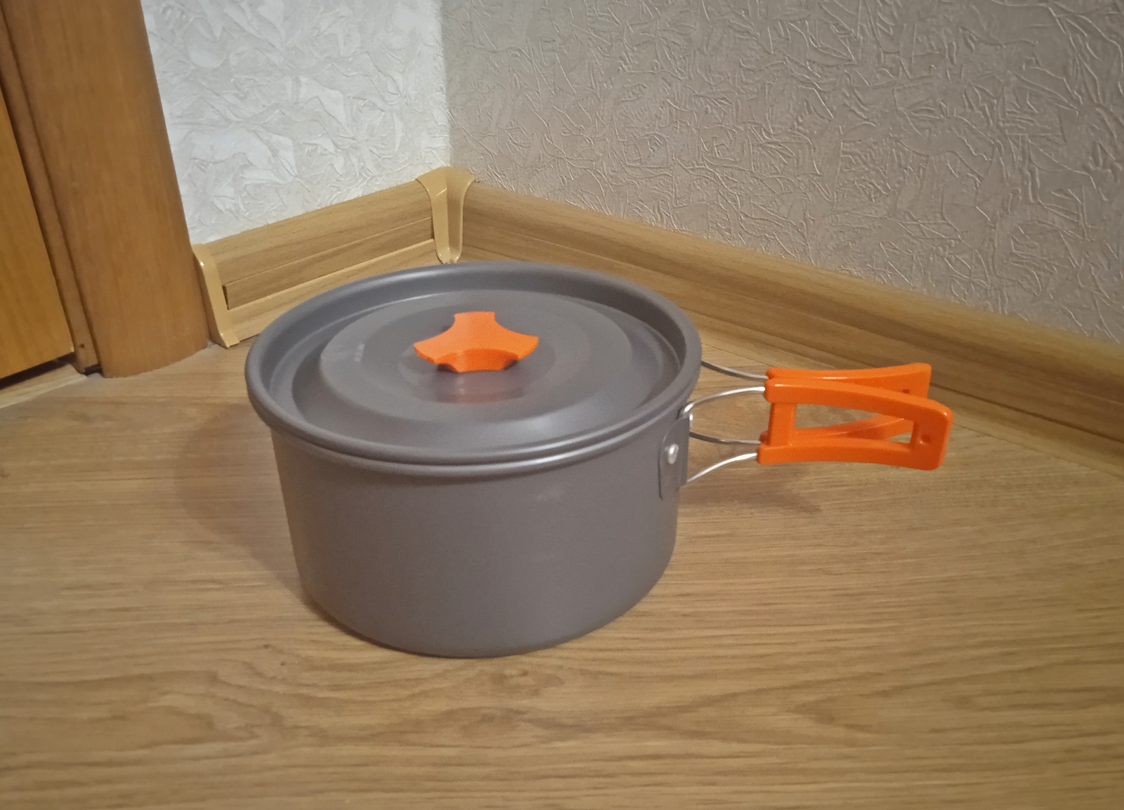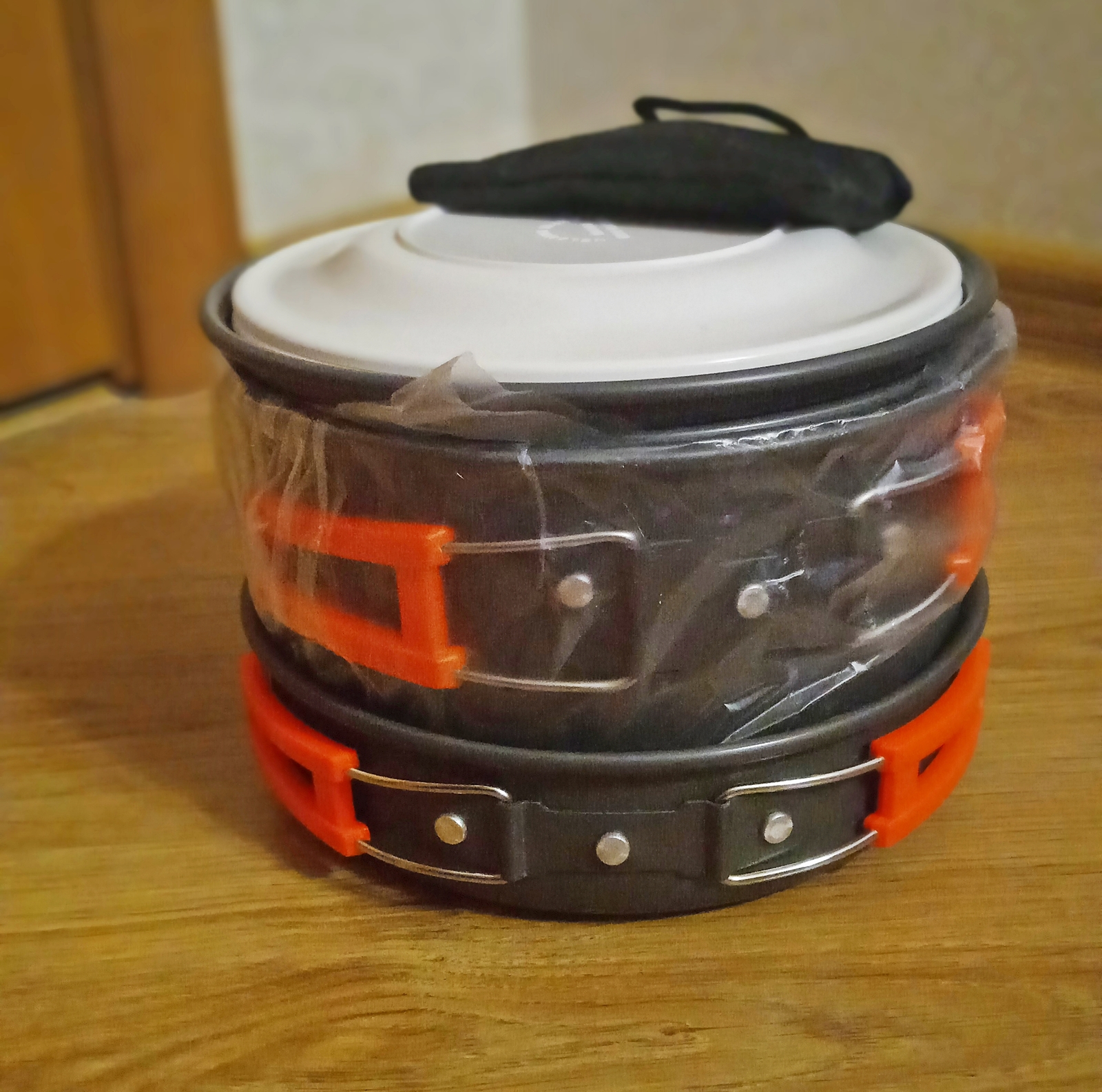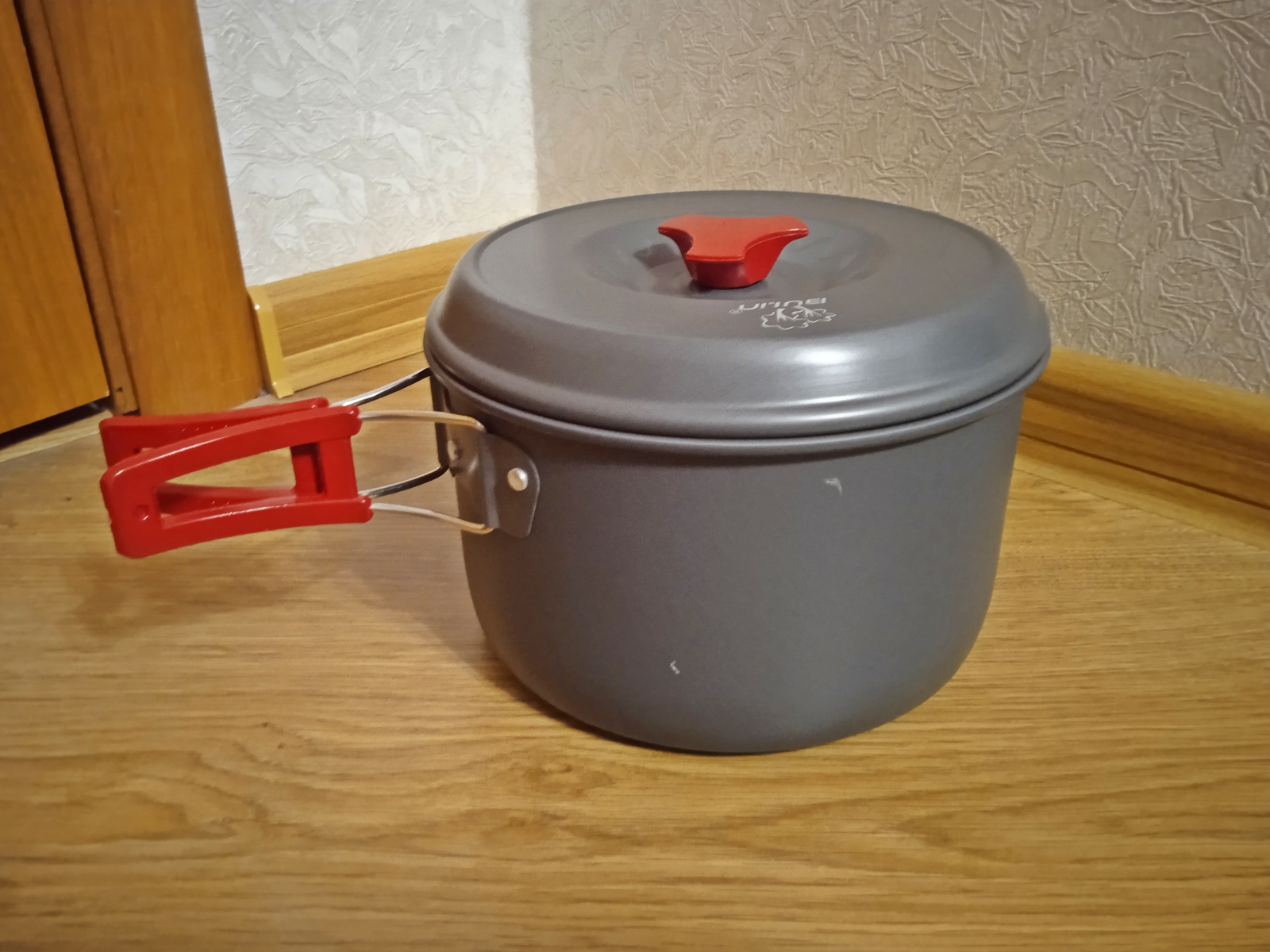 Набір туристичного посуду з 17 предметів Bulin. Куплений в США. Новий Виготовлений з високоякісного анодованого алюмінію з антипригарним покриттям Містить 2 каструлі з кришками (1.6 л, 2.6 л), 1 сковороду (29.5 см, 1.3 л), 1 чайник (1 л), 1 складний ковш, 1 ложку, 4 миски, 2 тарілки і 1 губку для чищення, 1 сумку Можна користуватись на відкритому вогні продано