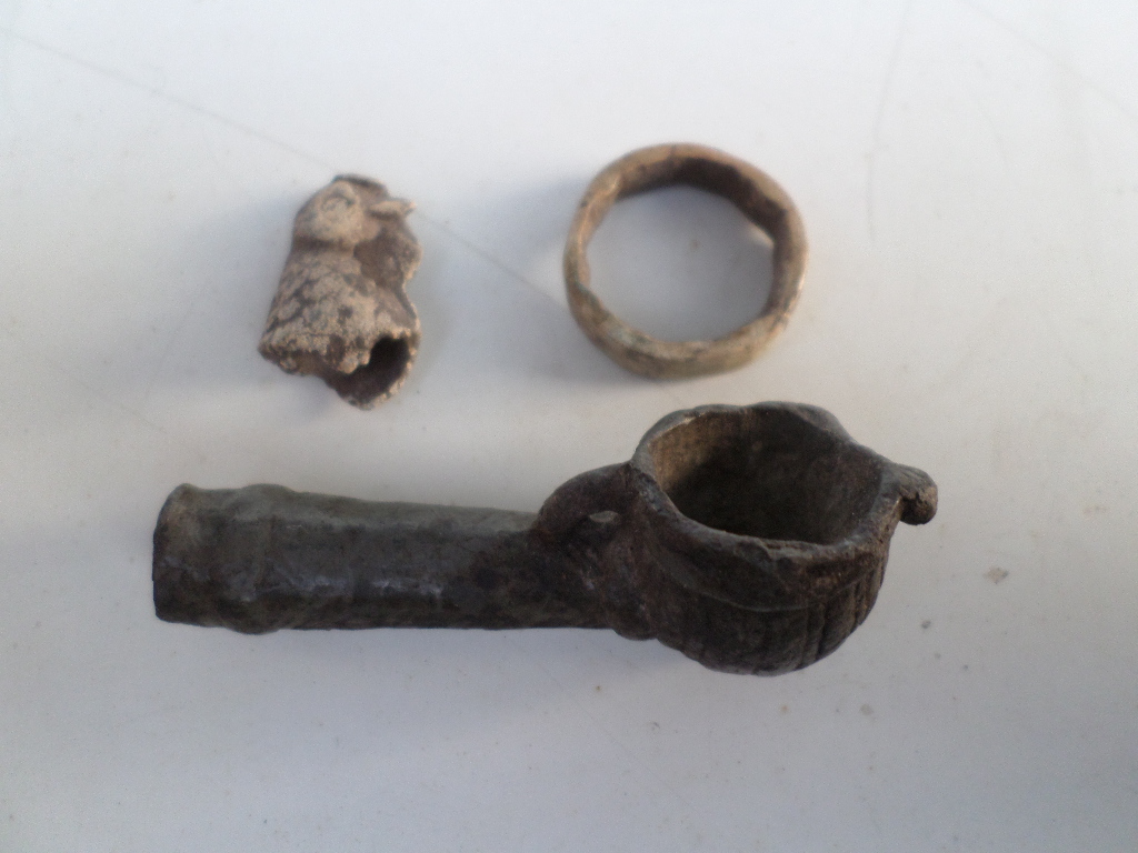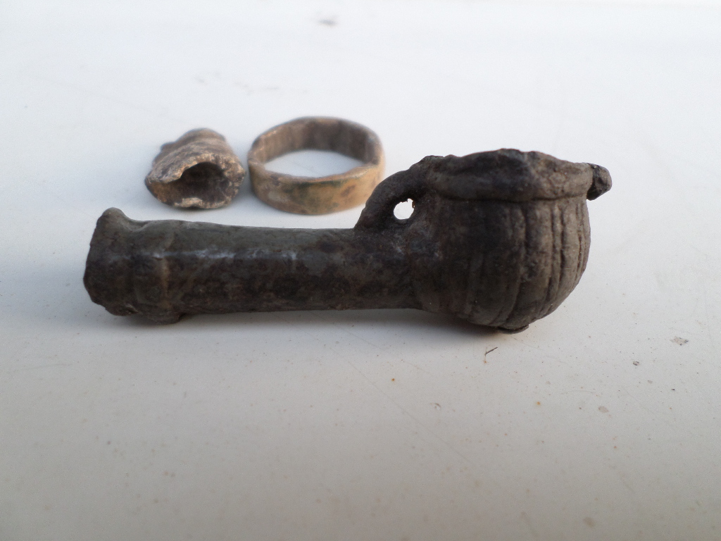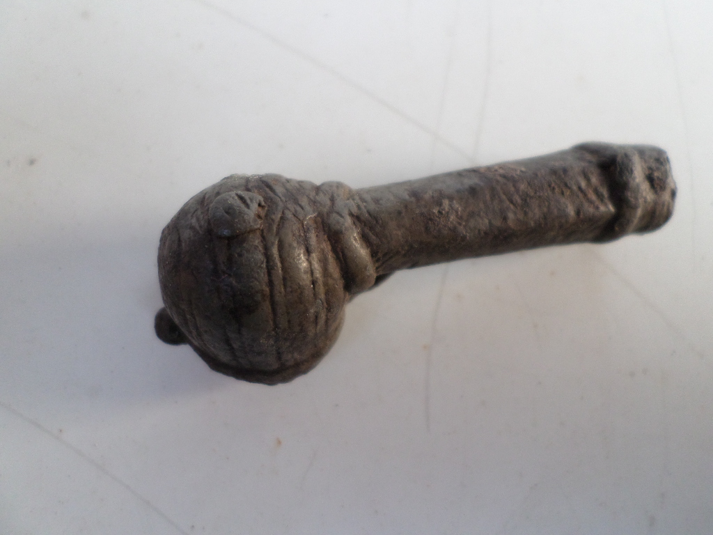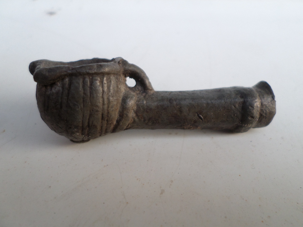 Мабуть козацька люлька. Туди ще вставлялася дерев"яна трубочка з бузини. Можливо і олово, але більше всьго, що шпіатр, або силумін.